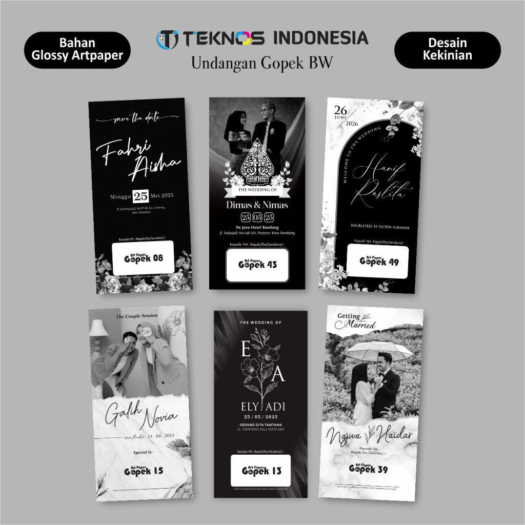 Undangan Pernikahan Simple Monokrom 1 Lembar Bolak-Balik Minimalis Free Foto Gopek BW Seri 1