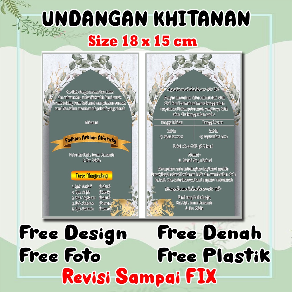 UNDANGAN SUNAT/ undangan khitan / undangan lipat / undangan kecil / undangan karakter / undangan khitanan