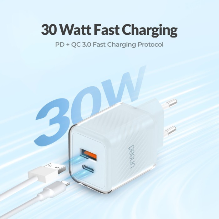 UNEED GlazePlug Mini Wall Charger Dual Port 30W PPS PD QC - UCH432