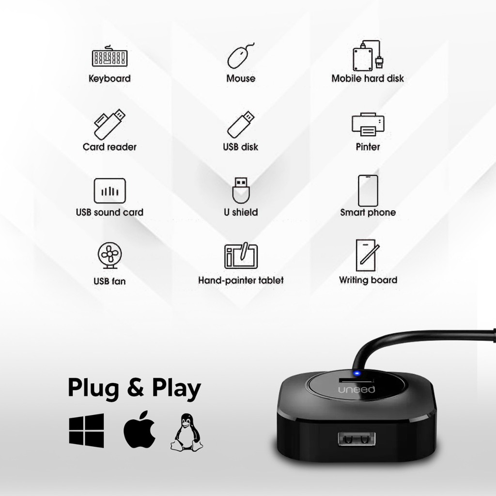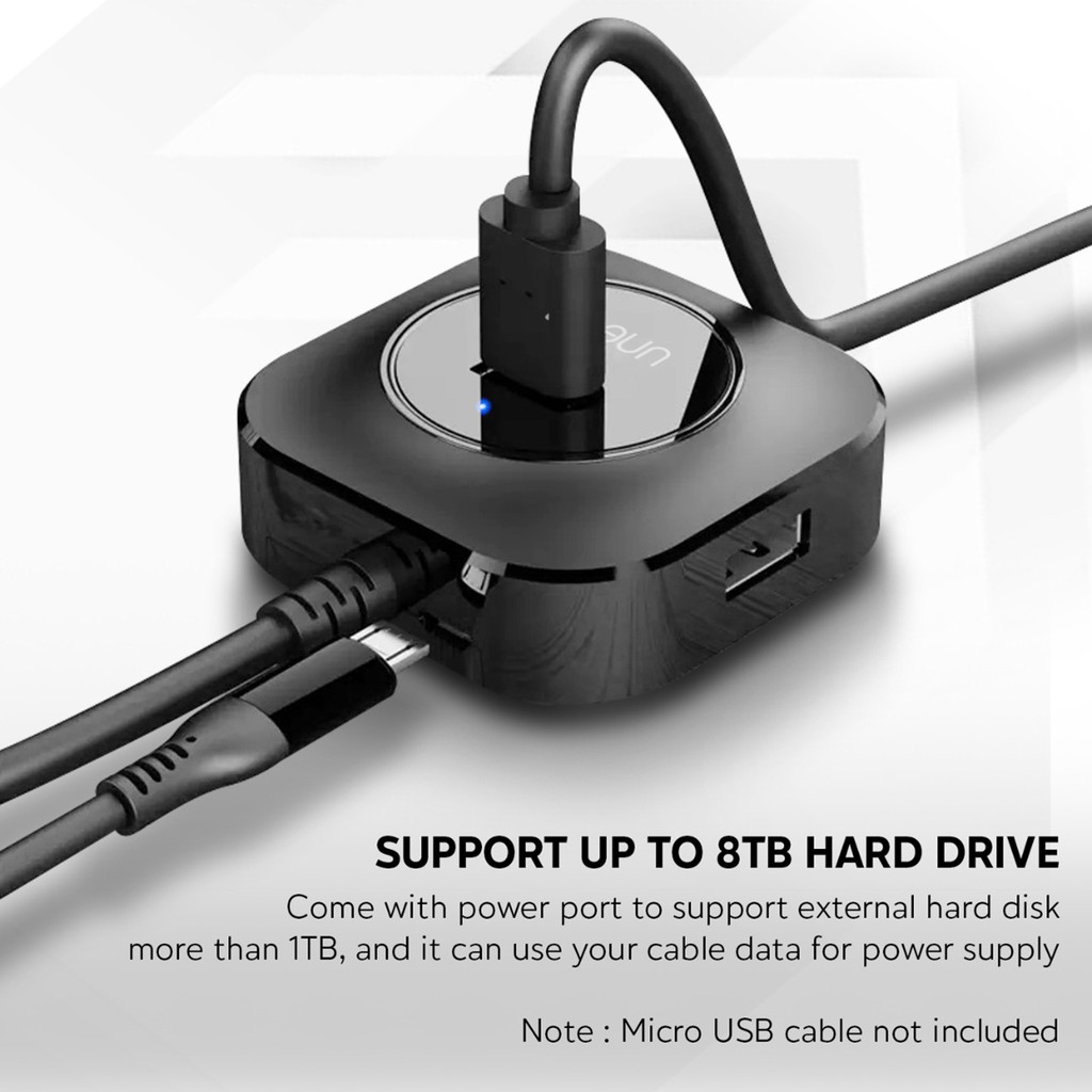 UNEED USB HUB 3.0 High Speed 4 Port Support 8TB Hard Drive - UUH102