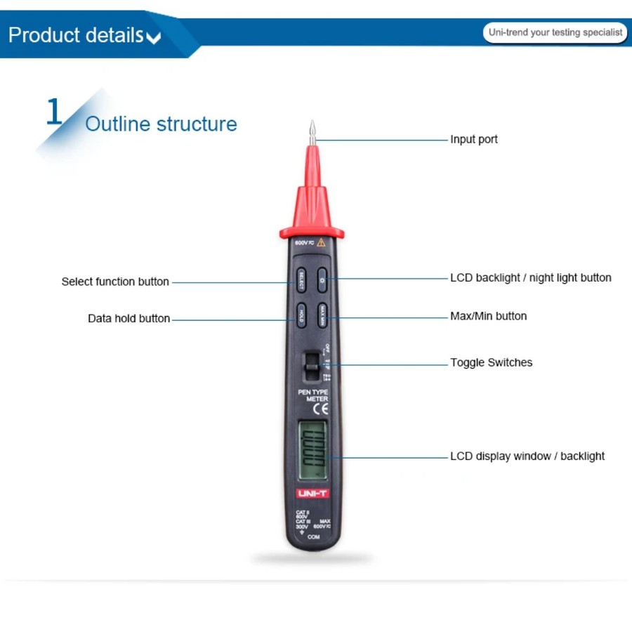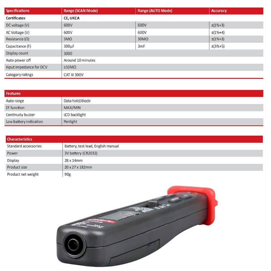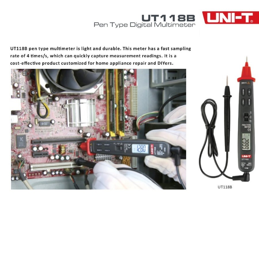 UNI-T UT118B Pen Type Digital Multimeter 3000 Count AC/DC Function Pen UT118B