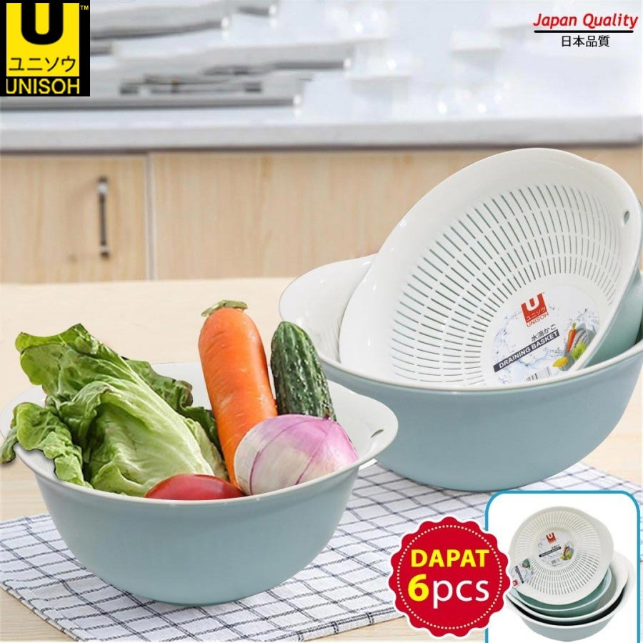 UNISOH Keranjang Buah Sayur / Keranjang Tirisan 6 IN 1 Dapat 3 Pasang Keranjang