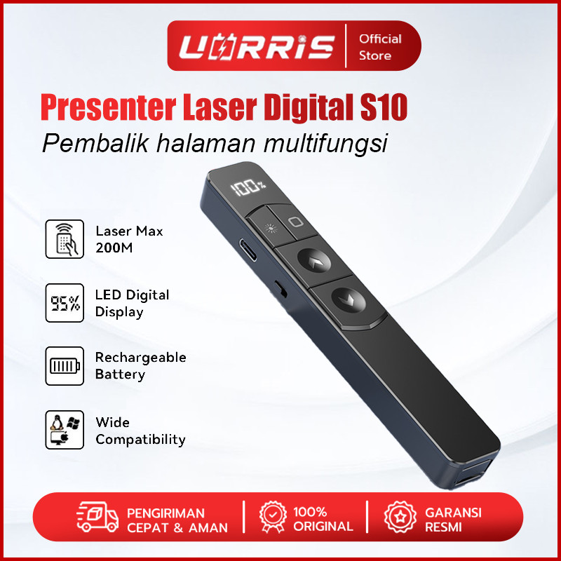 UORRIS S10 Laser Pointer Wireless Pointer Presentasi Presenter Rechargeable Type c Laser Remote Control