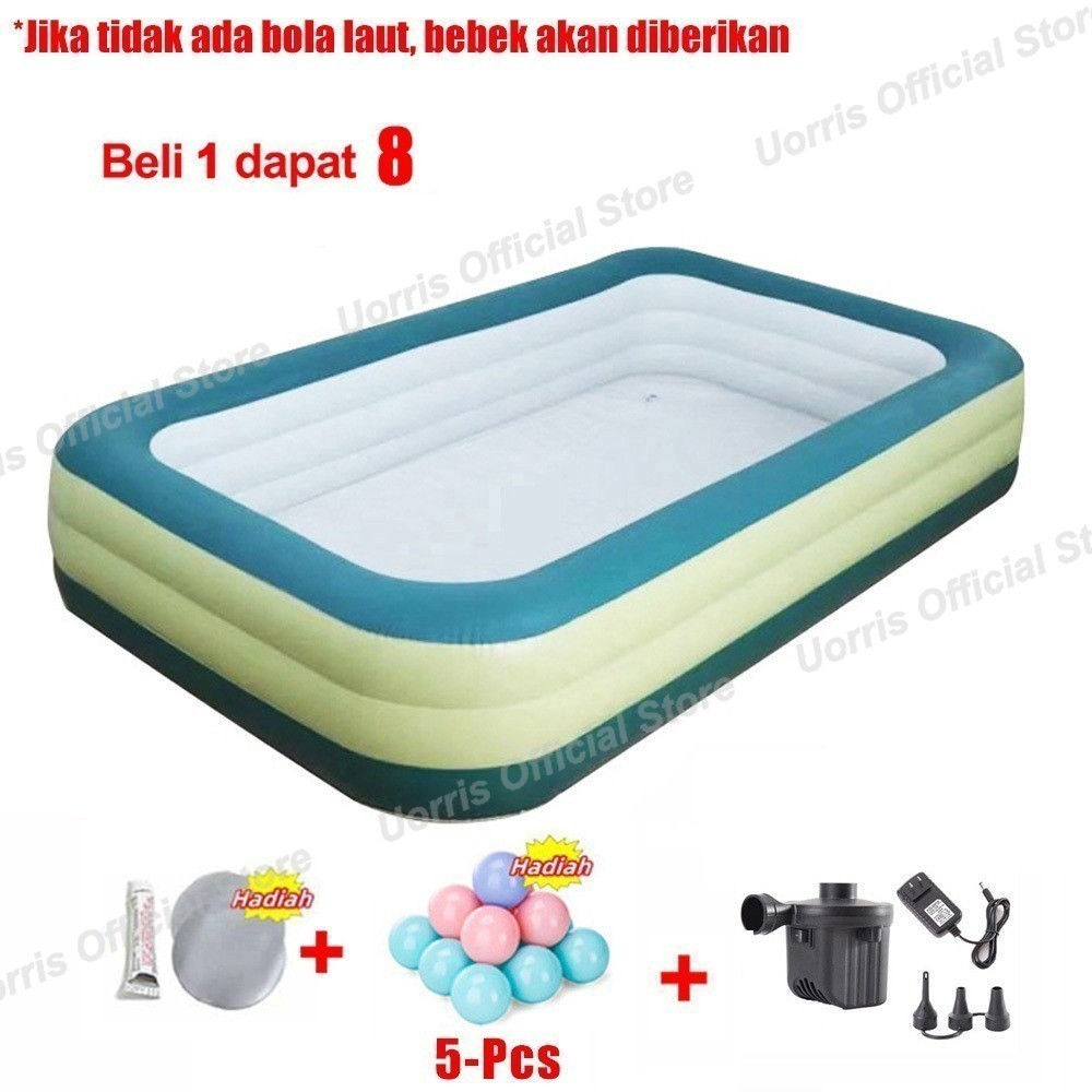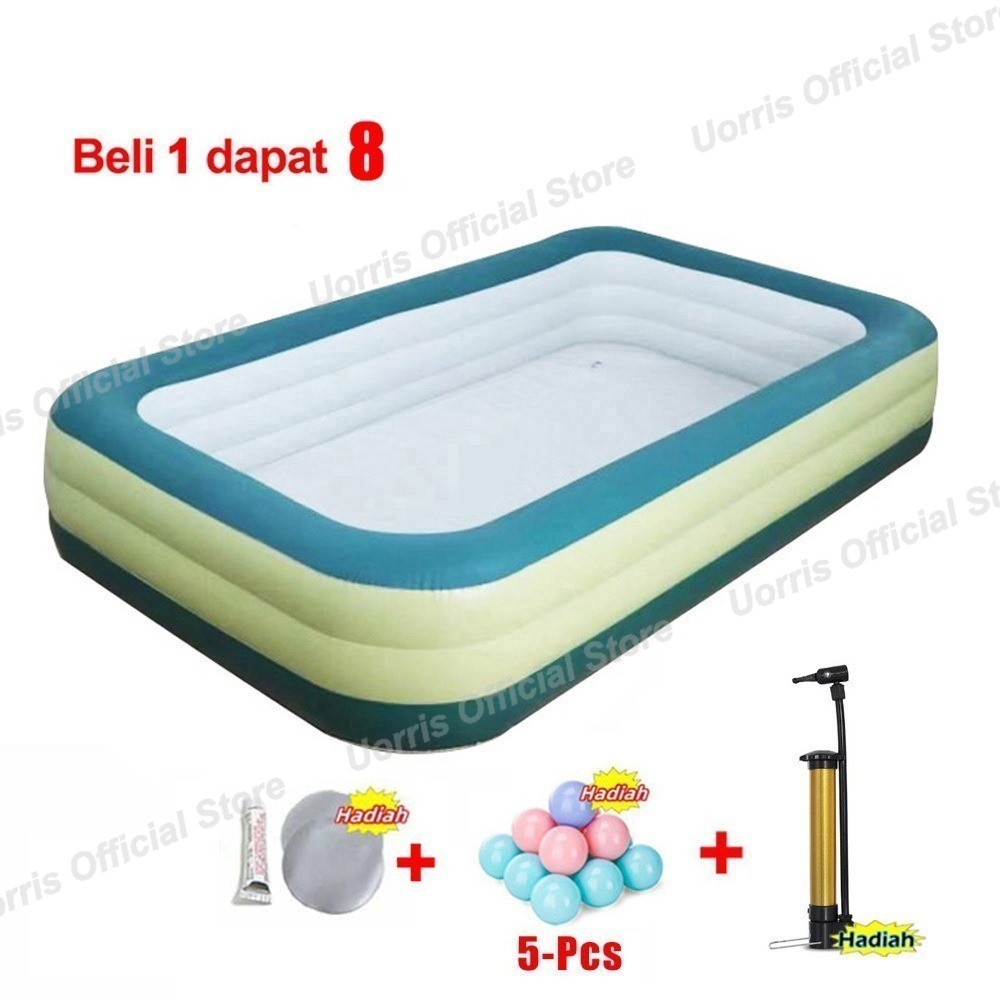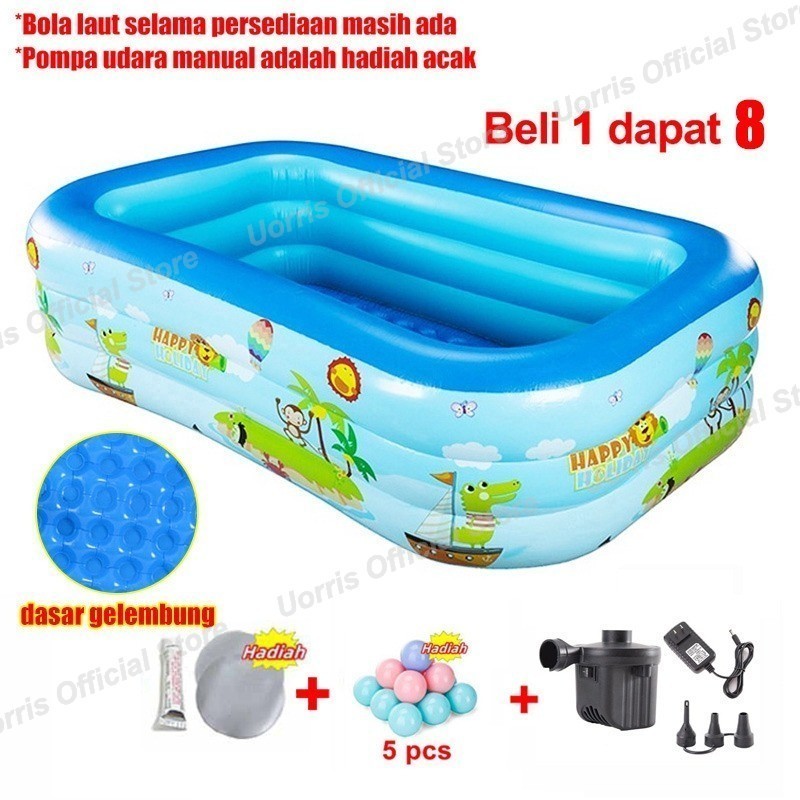 UORRIS kolam renang anak jumbo 2.1m+Pompa petak karet bahan tebal 2.1M kolamrenang anak besar murah Inflatable Swimming Pool For Kids ukuranbesar tinggi /balon renang anak/mainan kolam renang anak balon renang anak kolam karet