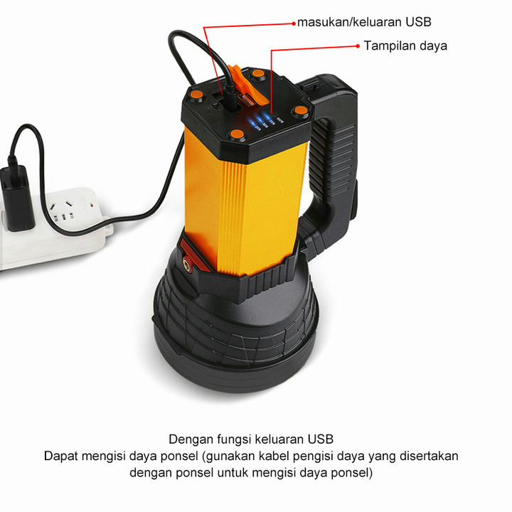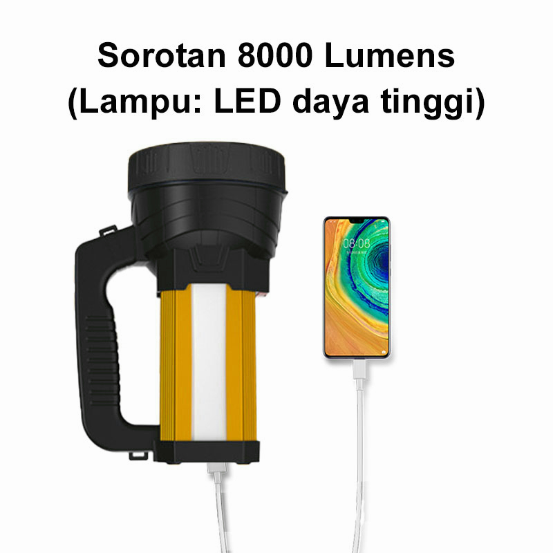 UPHOME Senter LED Super Terang Jarak Jauh 3 Mode Senter Camping Jumbo Multifungsi 48W IPX6 Waterproof Power 8000 Lumens 1200 Meter Senter Besar