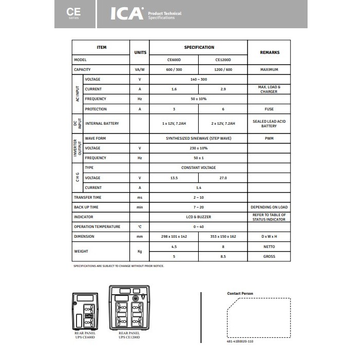UPS ICA CE1200D with Display LCD 1200VA 600W ICA CE 1200D