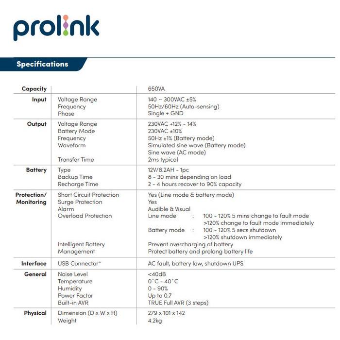 Prolink PRO700SFC UPS 700VA Line Interactive Super Fast Charging with Protection