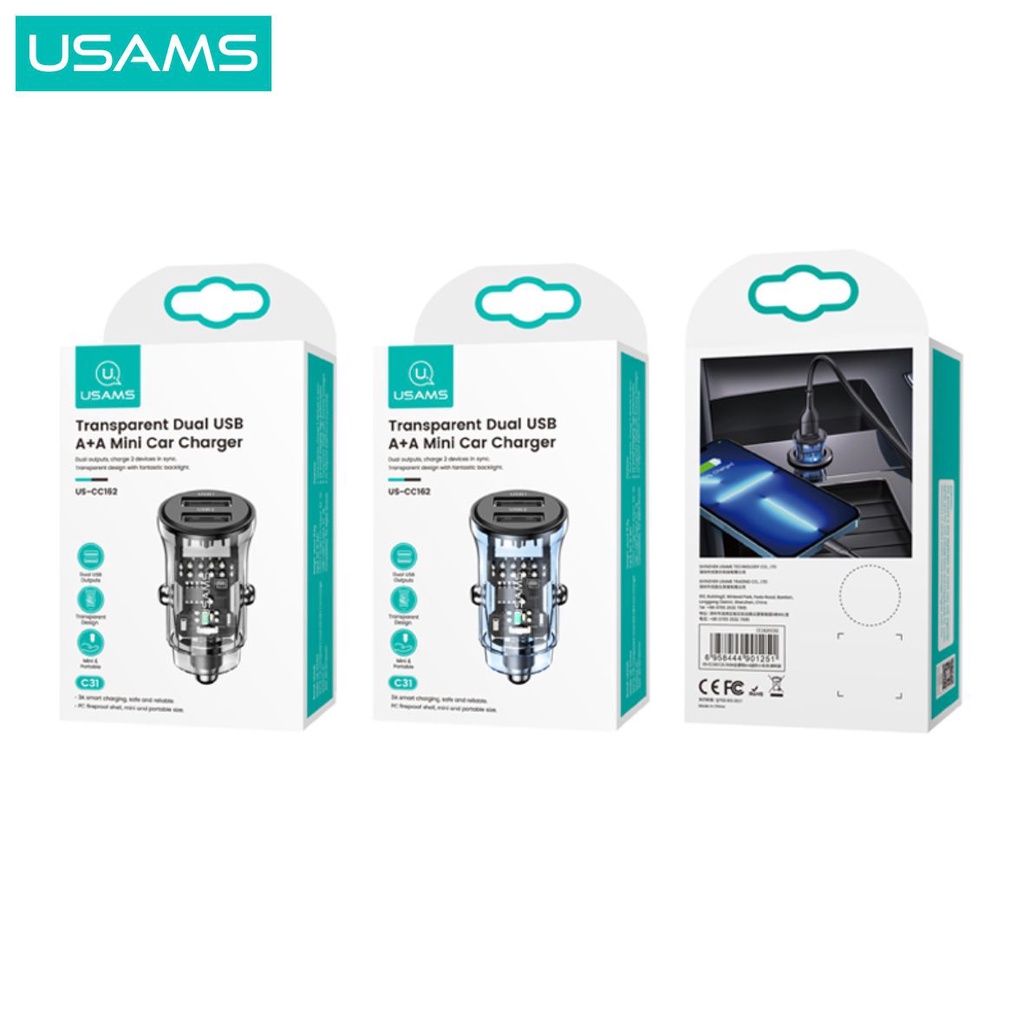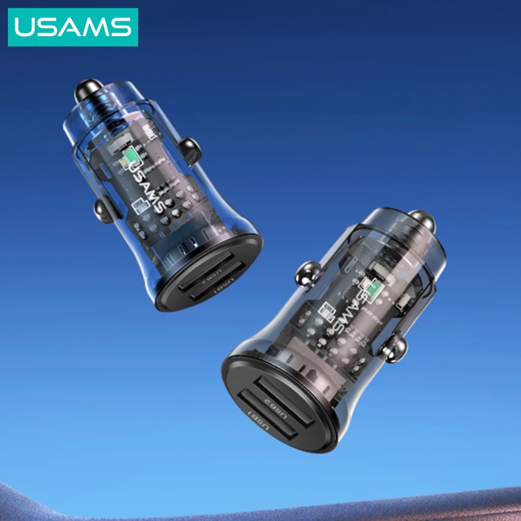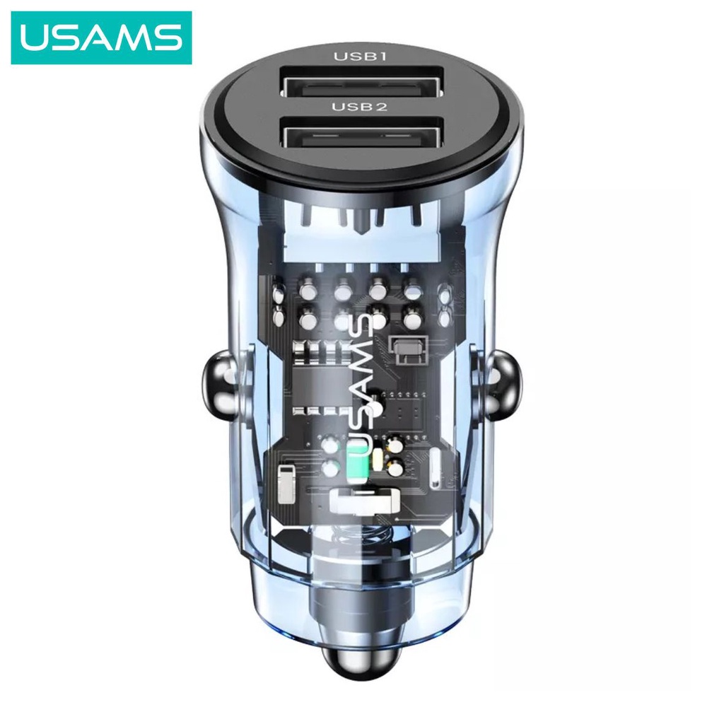 USAMS C31 Car Charger Mini Dual USB Transparent 3A Fast Charge