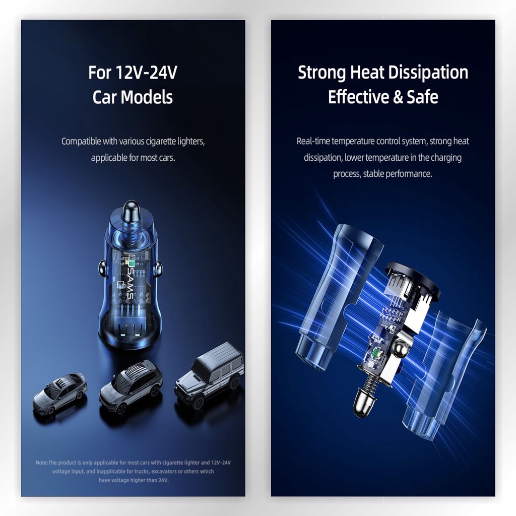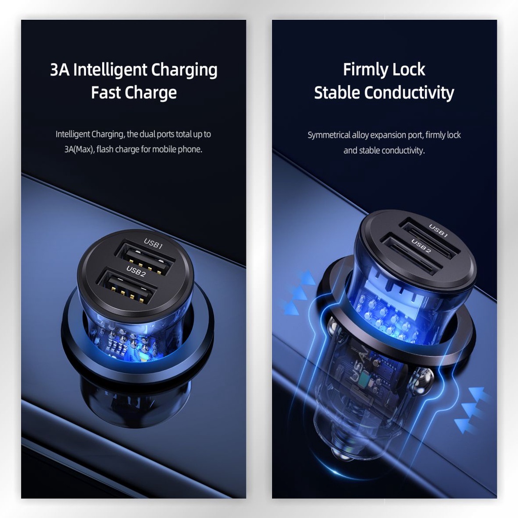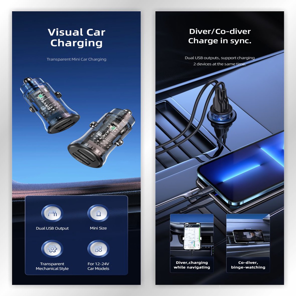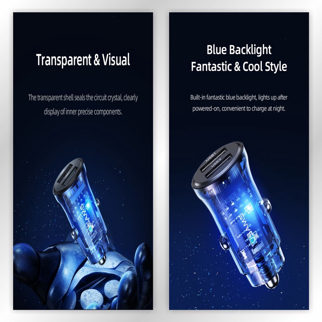 USAMS C31 Car Charger Mini Dual USB Transparent 3A Fast Charge