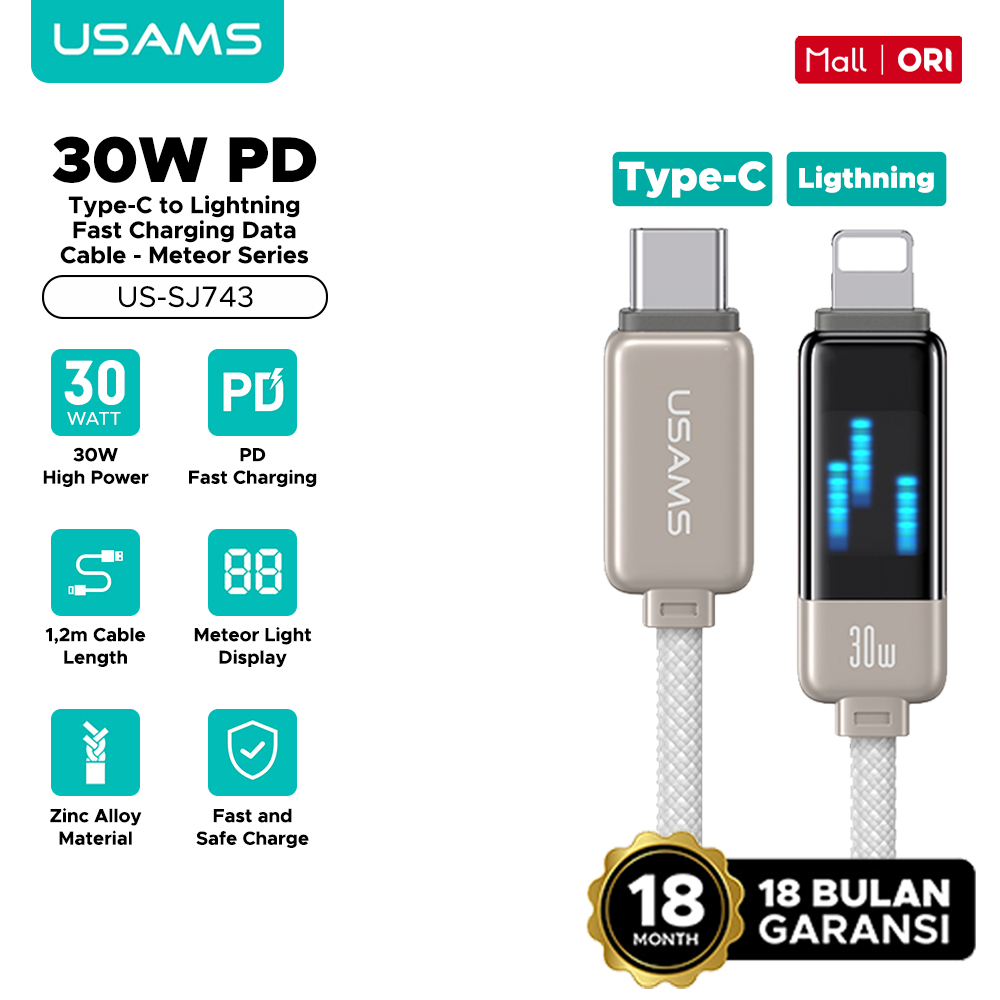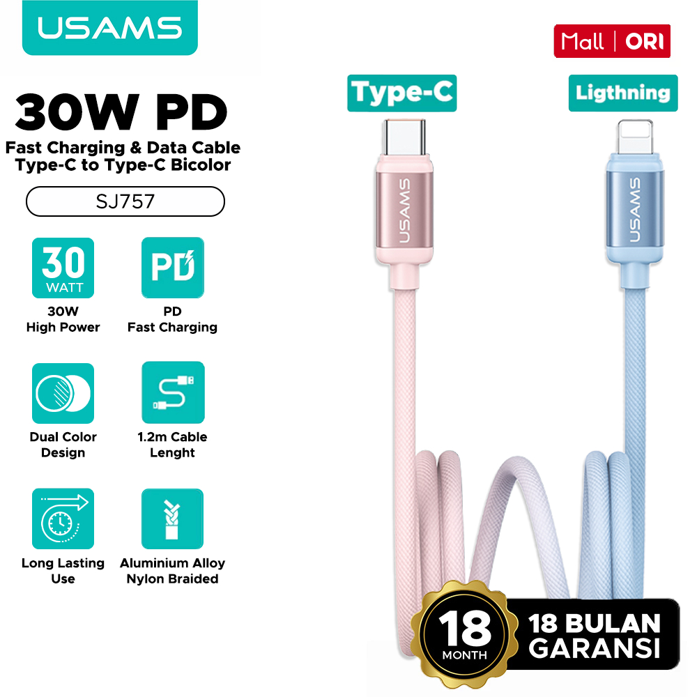 USAMS Kabel Data Type-C to Lightning 30W Fast Charging For iPhone 11 12 13 14 SJ712 SJ697 SJ702