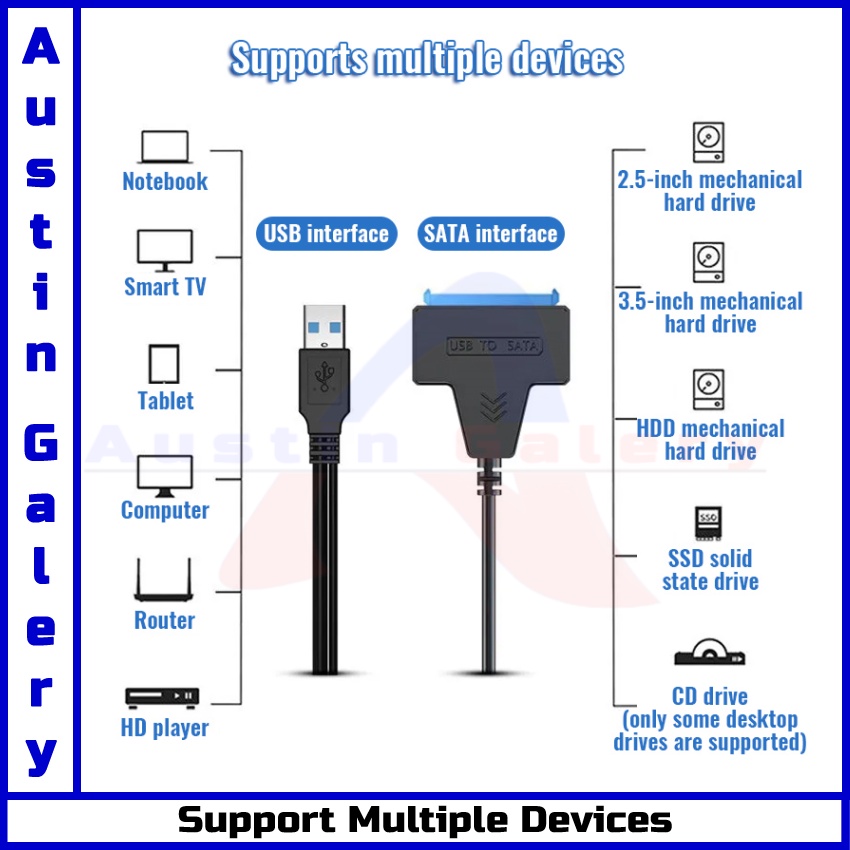 USB 3.0 TO SATA Adapter Hard Disk Drive SSD HDD Untuk PC Laptop Komputer