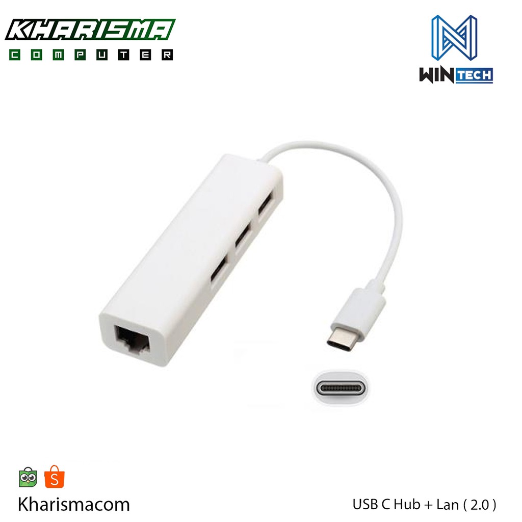USB C HUB + LAN 2.0 / USB Type C to LAN + Hub 3 port USB 2.0
