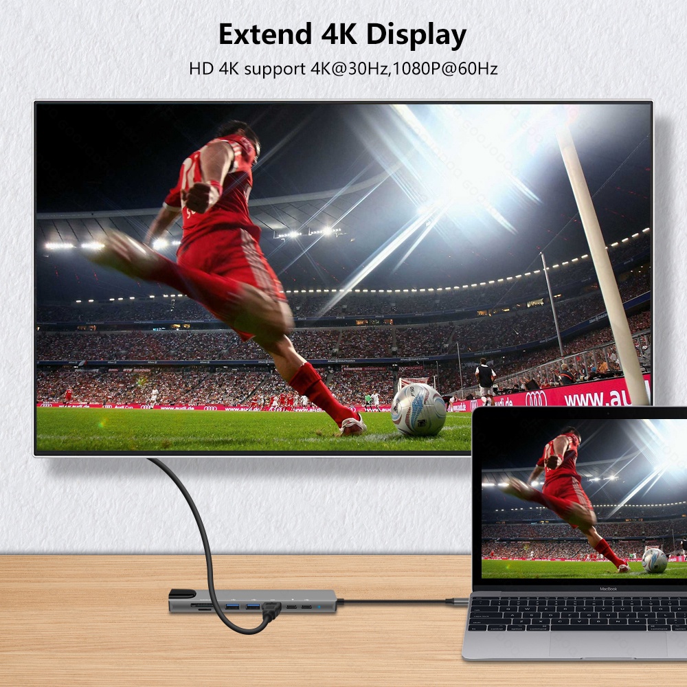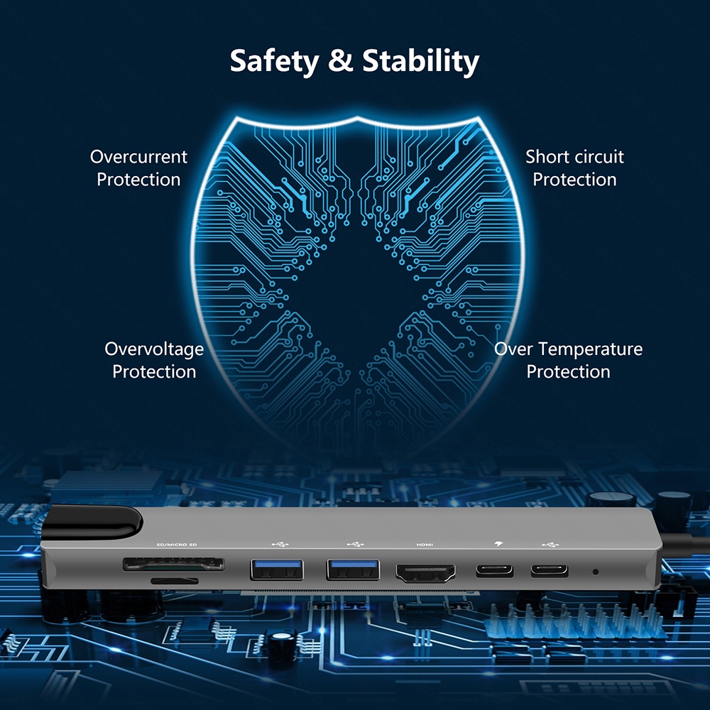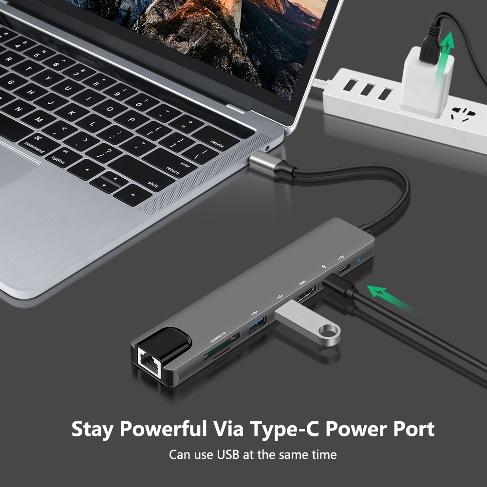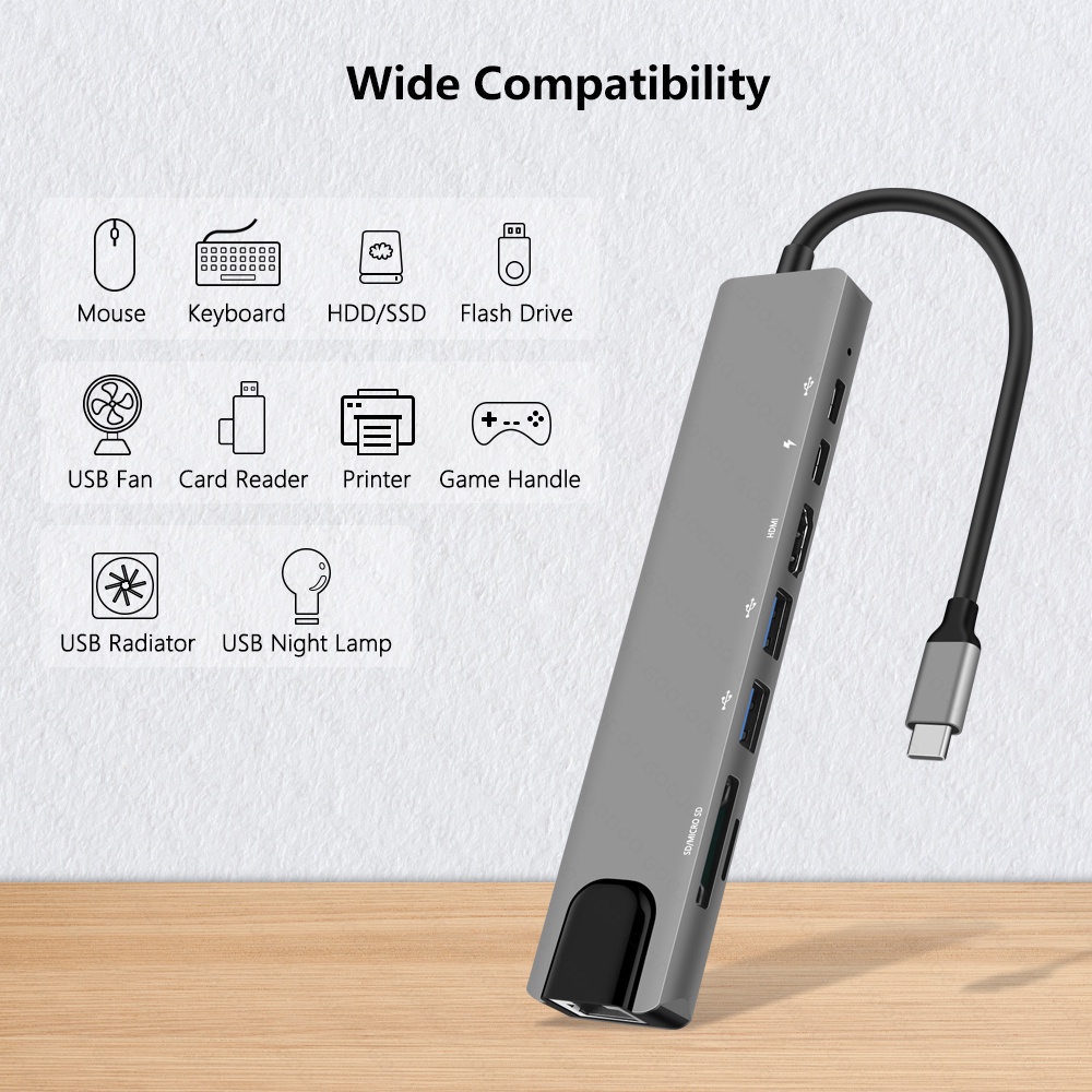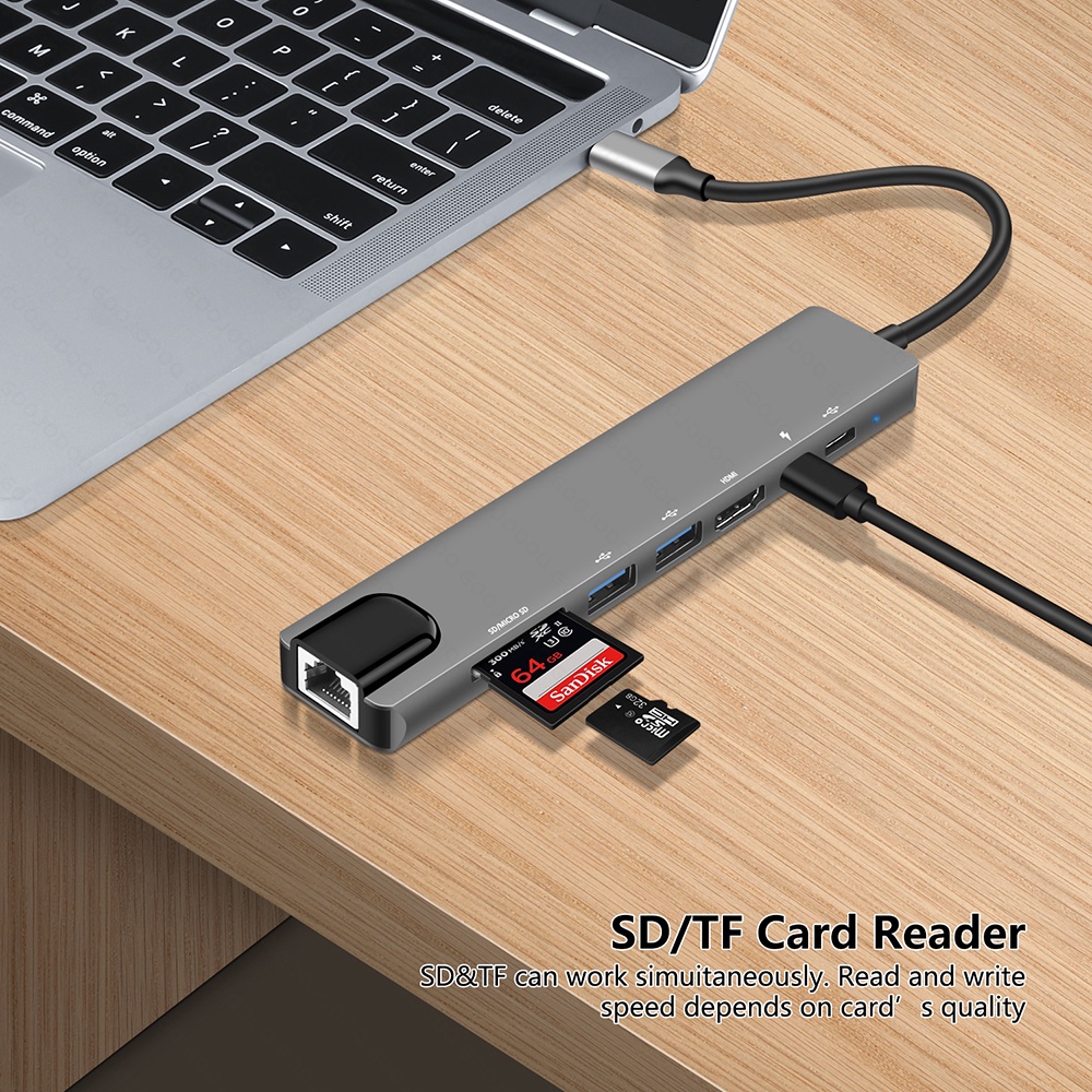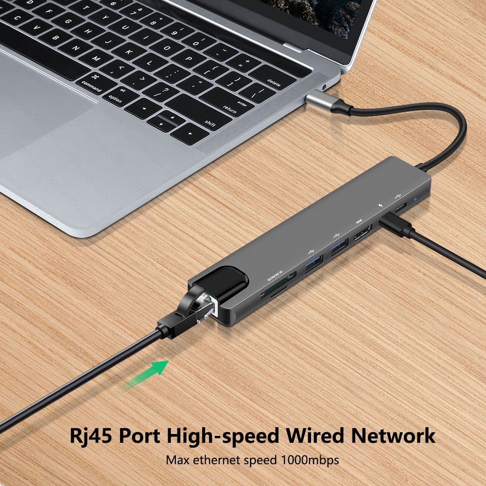 USB C Hub Type-C 3.1 to 4K Compatible RJ45 USB SD/TF Card Reader PD Fast Charge 8-in-1 USB Dock