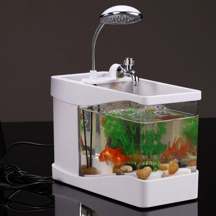 USB Desktop Aquarium Mini Fish Tank with Running Water - Akuarium Mini