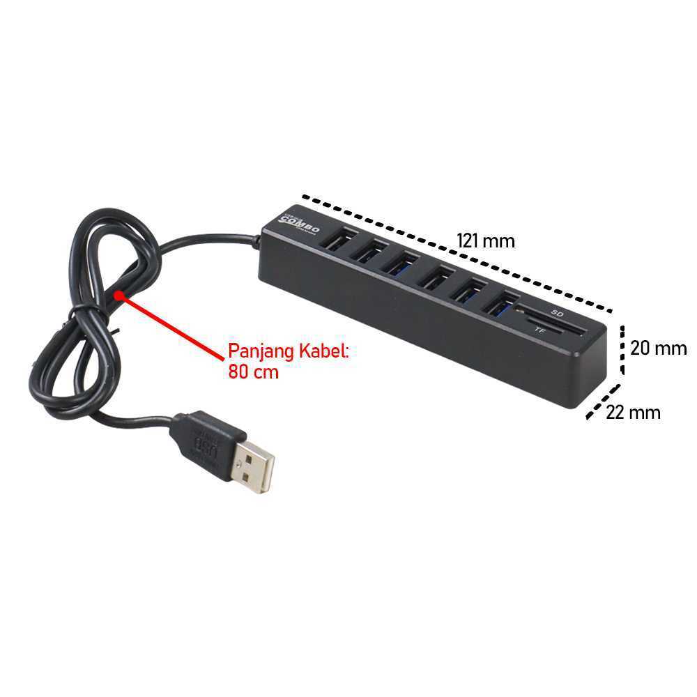 USB HUB 6 Port USB 2.0 Combo Card Reader SD Card dan TF Card/MicroSD