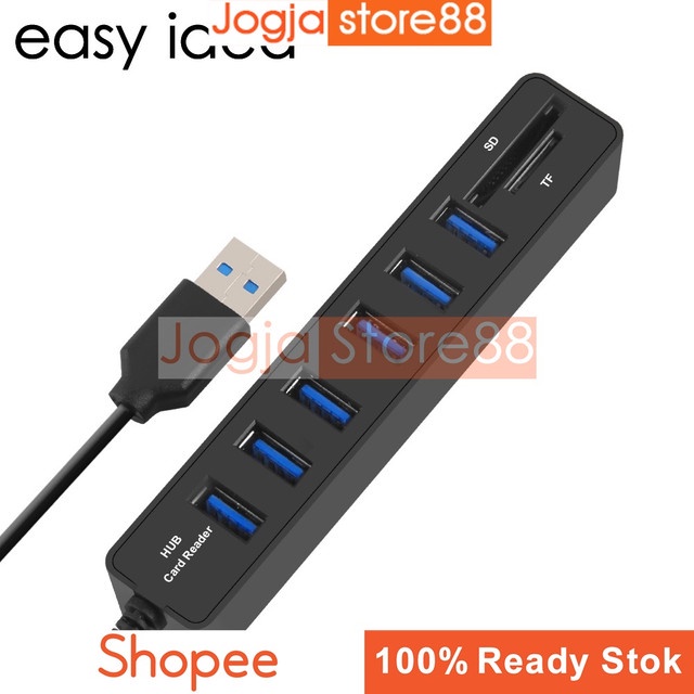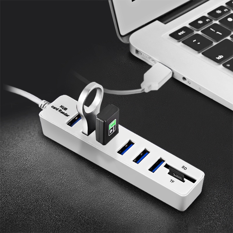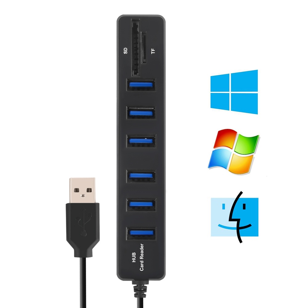 USB Hub | 2 in 1 Combo Slot SD/TF Card + 6 Port USB Speed Up To 480Mbps - Black