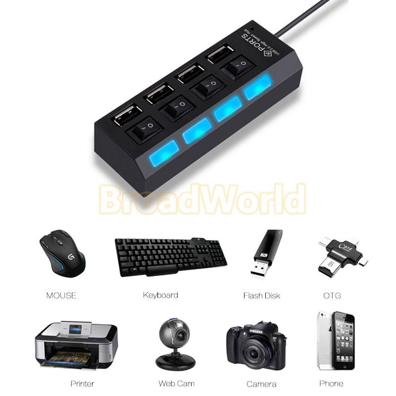 USB Hub 4 Port Saklar / Saklar 4 IN 1 2.0 Colokan Konektor Extender Flashdisk Mouse Keyboard / Usb Hub Saklar 4 Port Usb 2.0 Switch Dengan Lampu Led