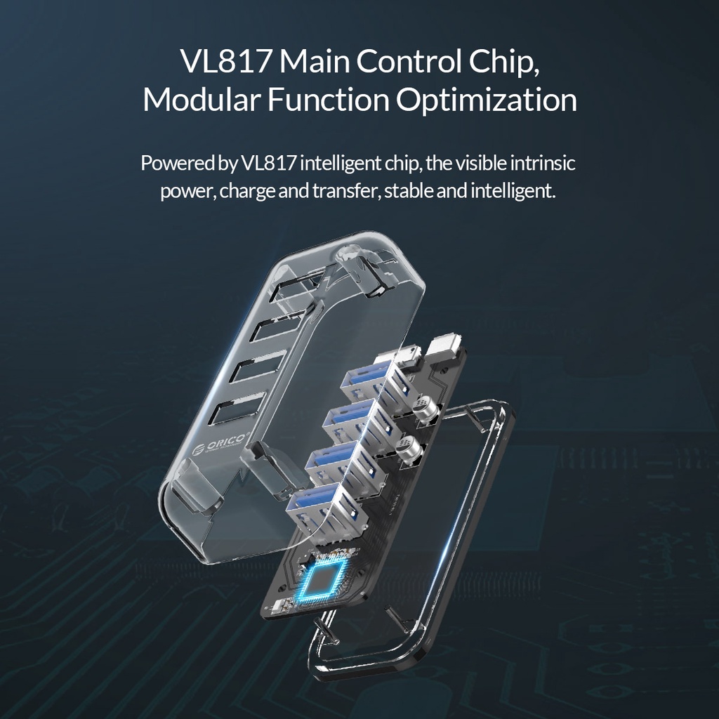 USB Hub 4 Port Transparent ORICO USB 3.0 - F4U-U3 USB Terminal Original USB Port Colokan Usb Banyak Ori Untuk Laptop USB hub 3 0 Terminal USB