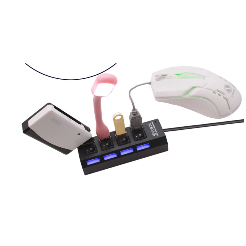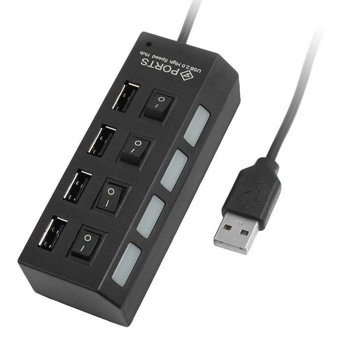 USB Hub 4 port output on off LED 4in1 Colokan Konektor 2.0 cocok untuk Flashdisk Mouse Keyboard kabel charger