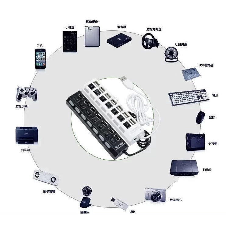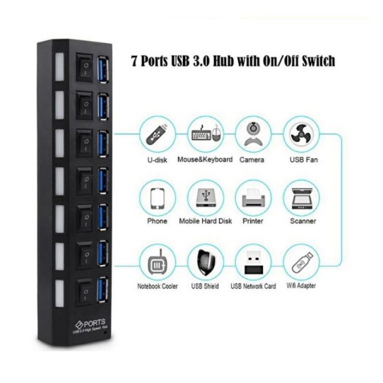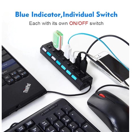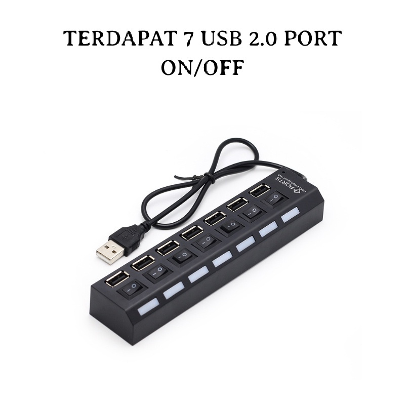 USB Hub 7 port Output on off LED 7in1 Colokan Konektor 2.0 cocok untuk Flashdisk Mouse Keyboard kabel charger