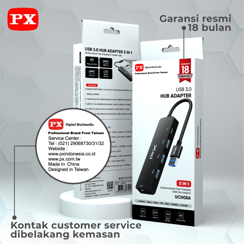 USB Hub Converter USB 3.0 Connector Adaptor Laptop 5 in 1 PX UCH05A
