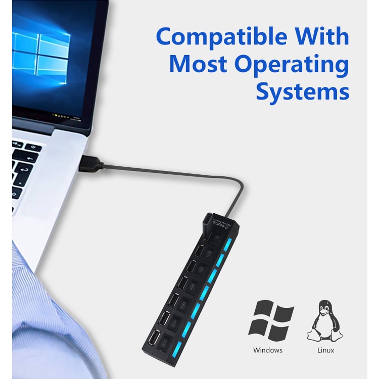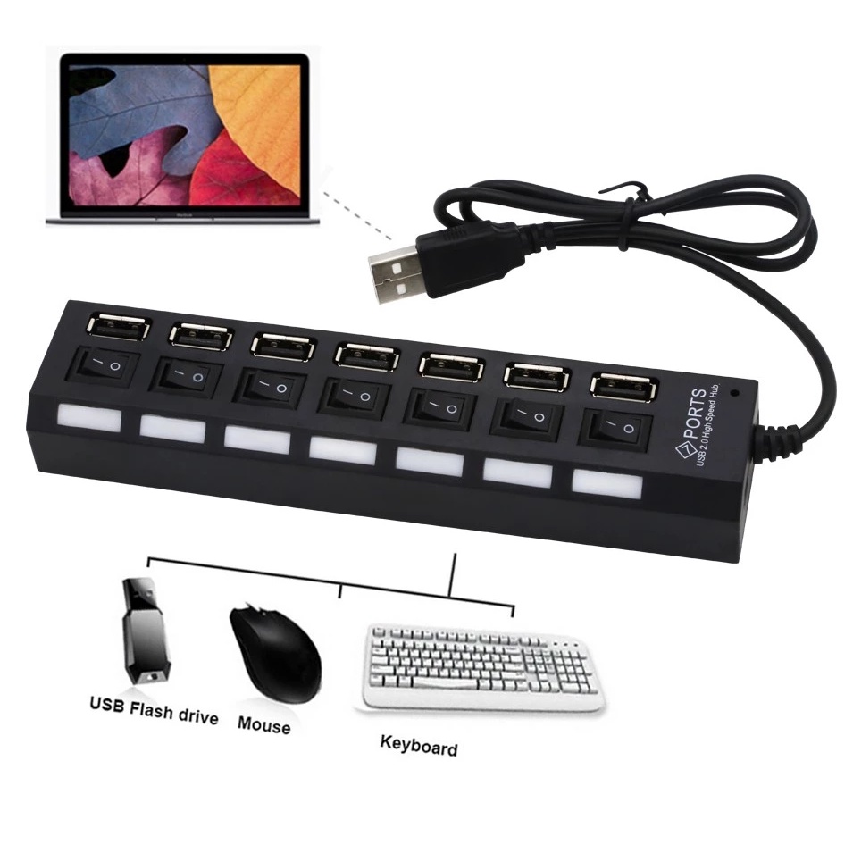 USB PORT tombol on off adapter usb hub portable port usb extender 4 in 1 dan 7 in 1 Sambungan colokan kabel mouse flashdisk keyboard printer usb port hub