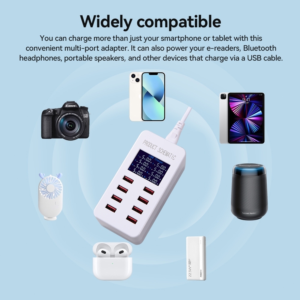 [COD] loopify USB Port Multi Port Charger 50W Smart USB Charger 8 Port Colokan USB Banyak Adaptor Charger Fast Charging Digital Display LED Function