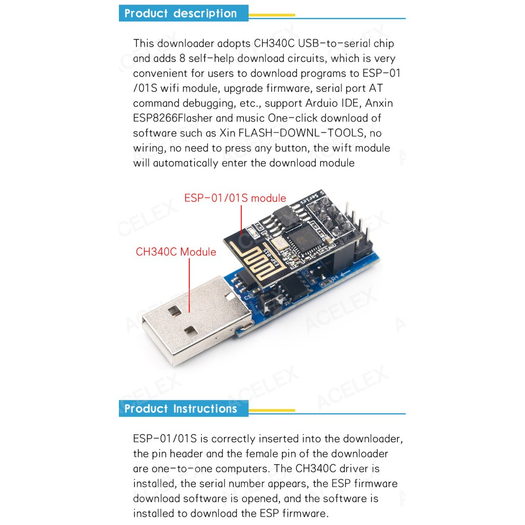 USB Programmer for ESP01 ESP-01S Flasher Firmware Downloader ESP-01