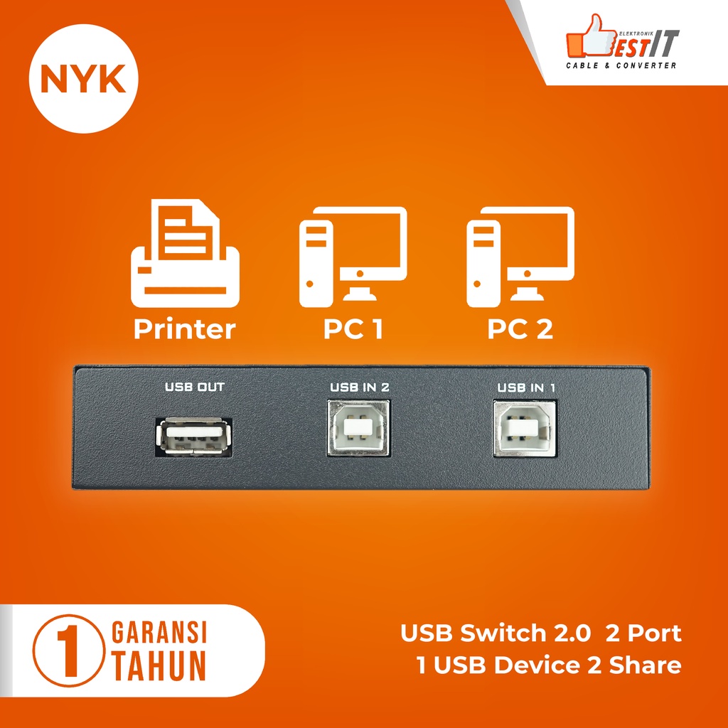 USB Switch Manual Printer 2 Port / Data Switcher 1-2 USB Printer NYK