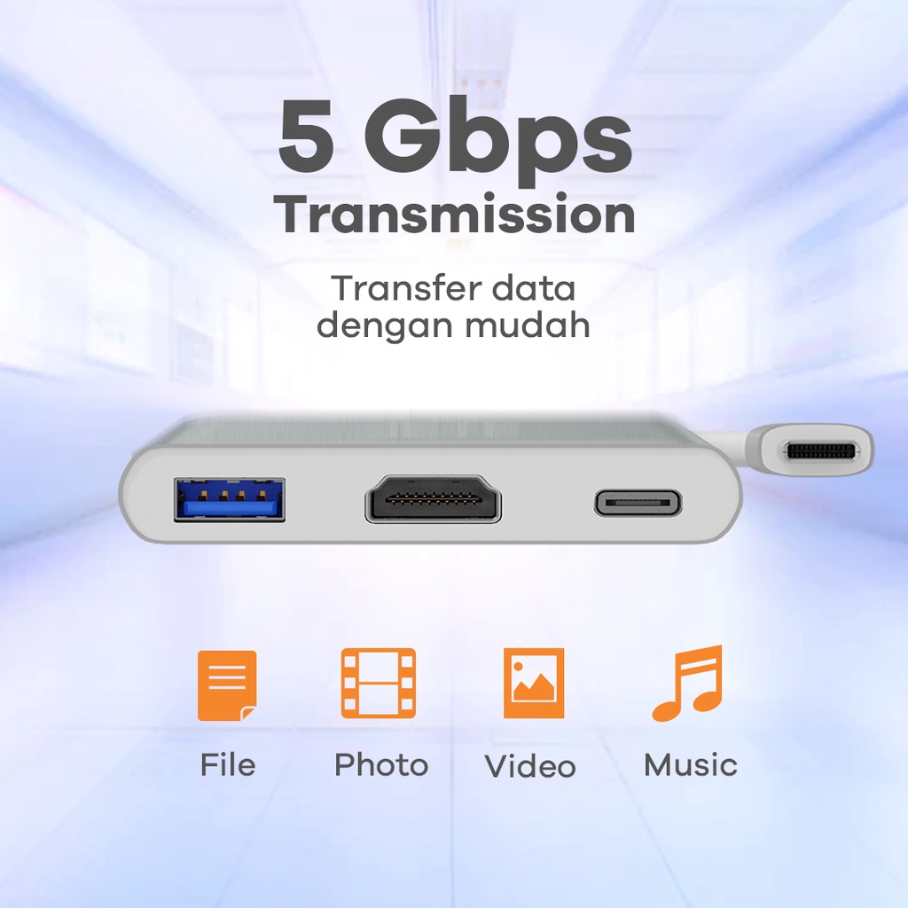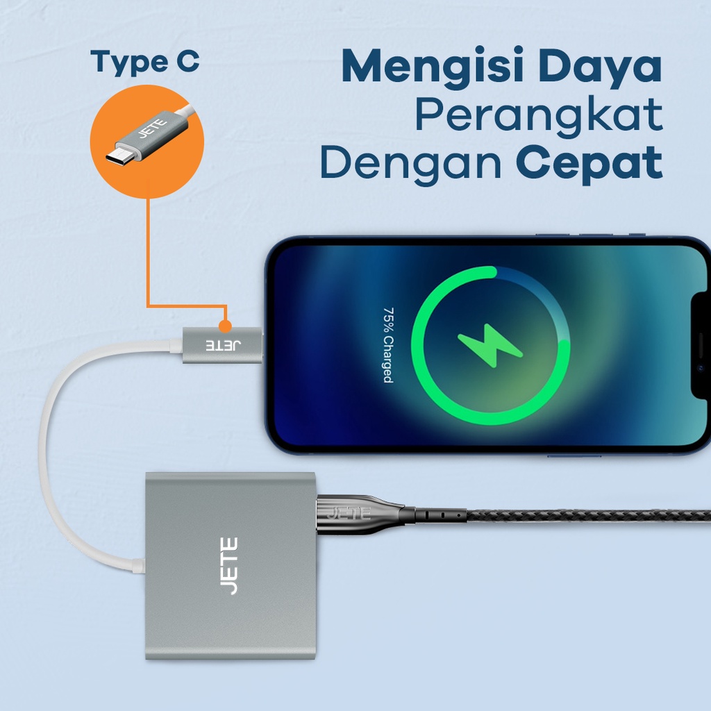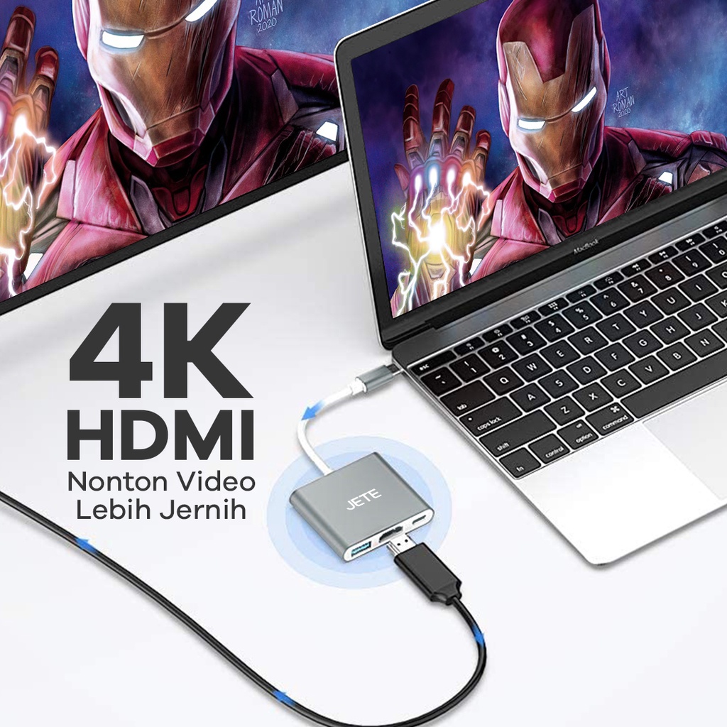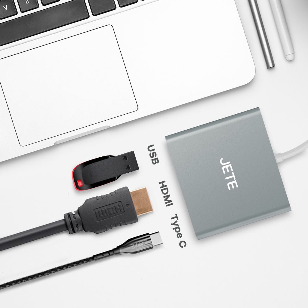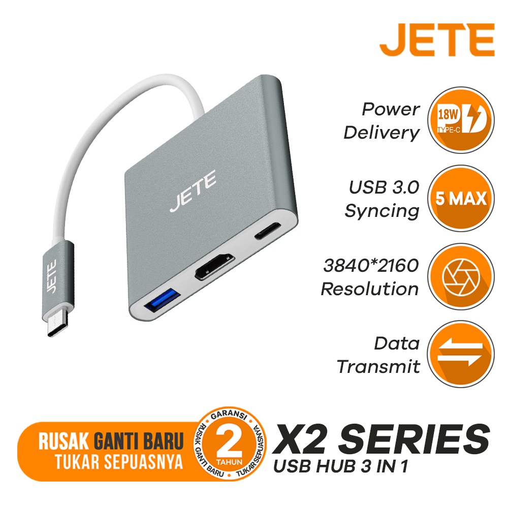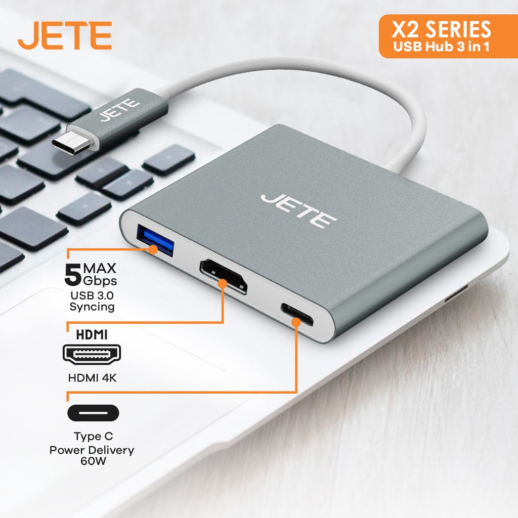 USB Type C Hub Converter Konverter 3 in 1 Multi Port HDMI USB 3.0 Type C JETE X2 - Garansi 2 Tahun