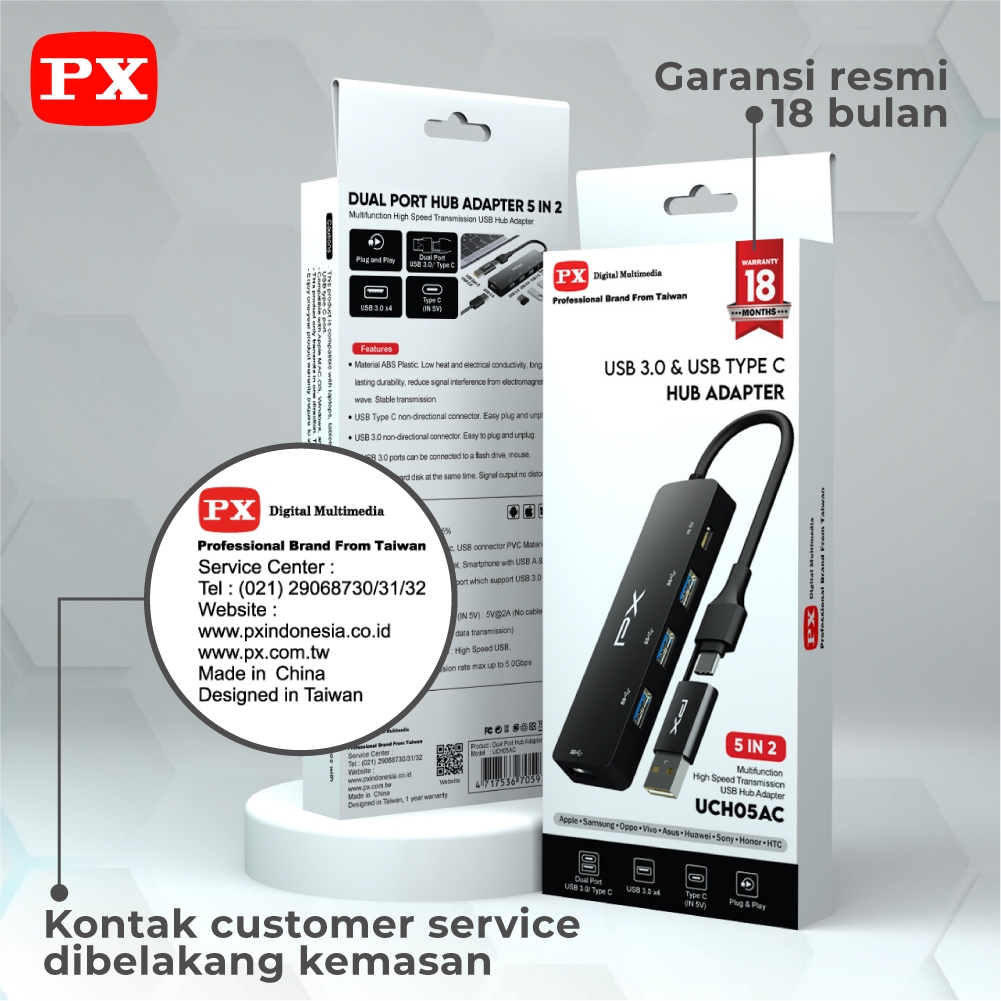 USB Type C Hub Converter USB 3.0 OTG Type C 5 in 2 PX UCH05AC