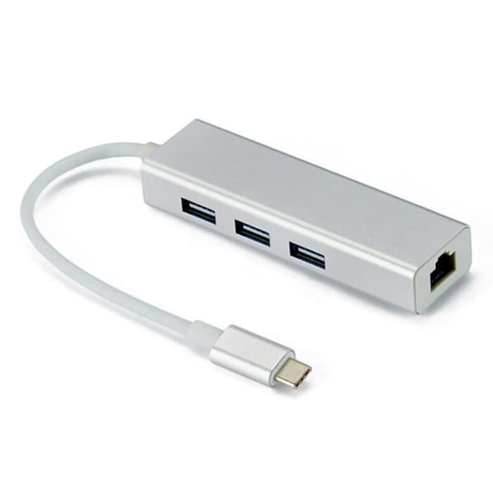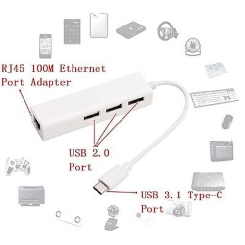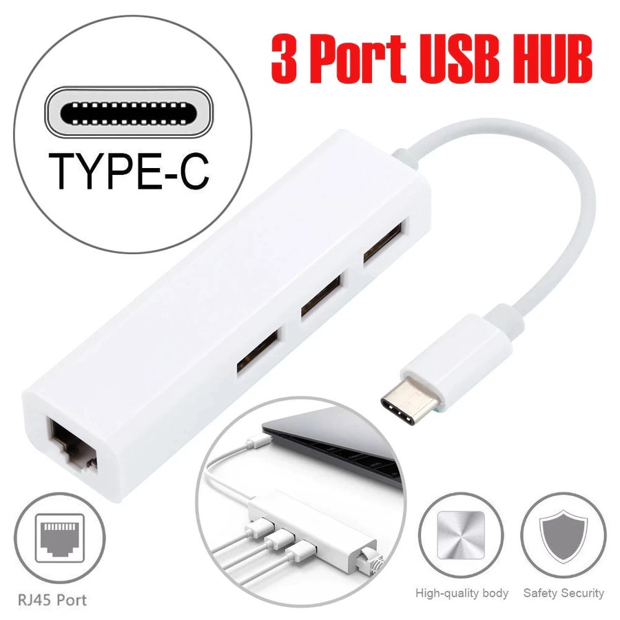 USB Type-C to Lan Adapter with 3 Port USB 3.1 Hub for Apple MAC - White
