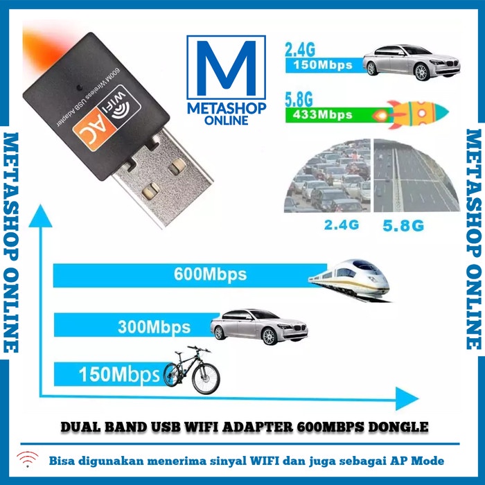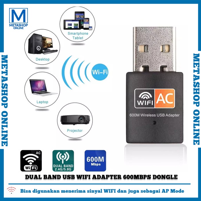USB WiFi Dual Band 2.4Ghz 5Ghz Wireless Dongle Adapter 600 MBPS