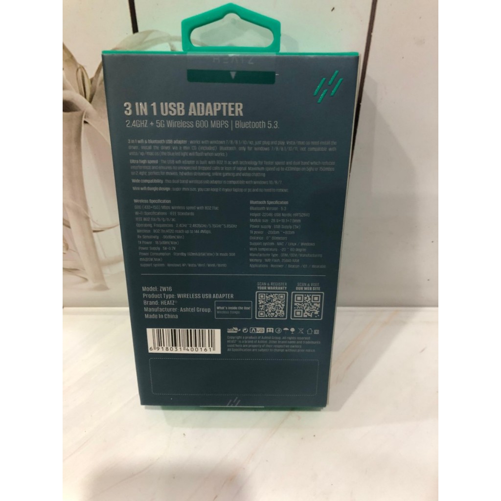 USB Wireless Bluetooth Adapter Dongle 600 Mbps Original Heatz - ZW16