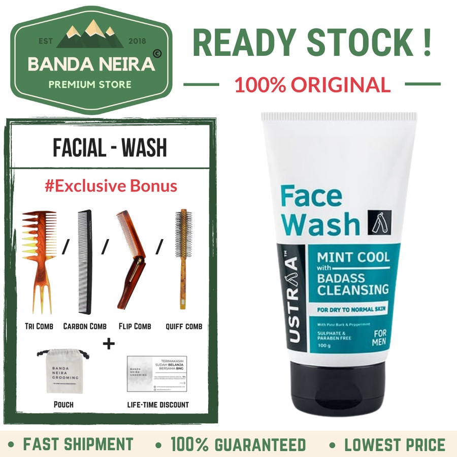 USTRAA Face Wash Mint Cool with Badass Cleansing for Dry Skin