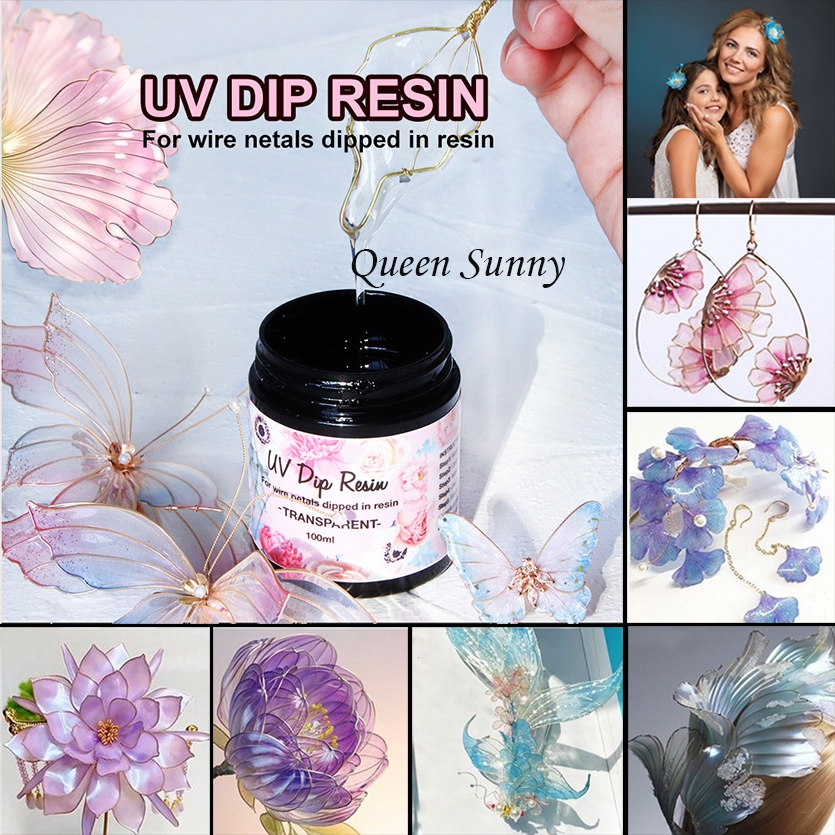 UV DIP RESIN Lem Resin Celup Tidak Berbau Cairan Pembuat Hairpin Jepit Rambut Anting Bunga Bening DIY Bahan Wire Kawat Pembuatan Perhiasan Resin Aksesoris
