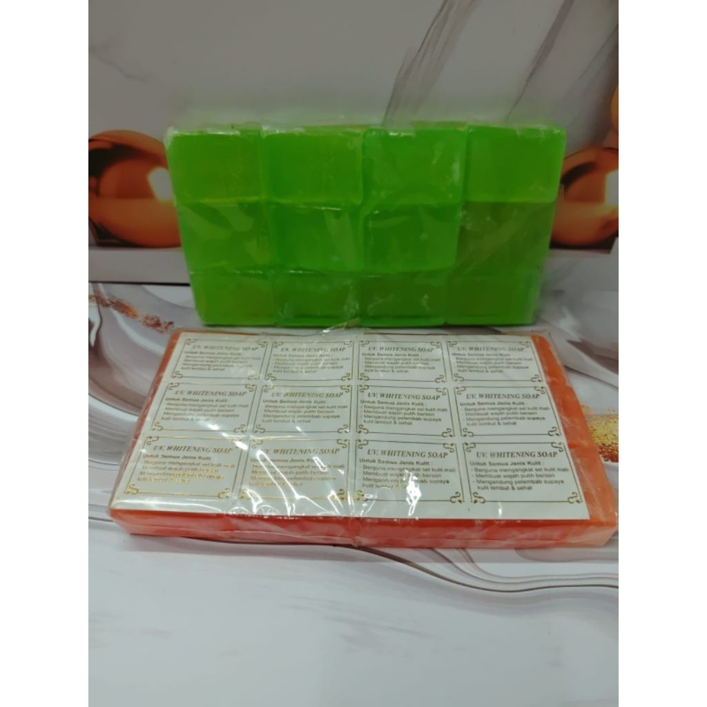 UV WHITENING SOAP PER 12PCS, SABUN UV WHITENING, SABUN UV TRANSPARAN, SABUN MELON, SABUN PAPAYA, SABUN BATANG