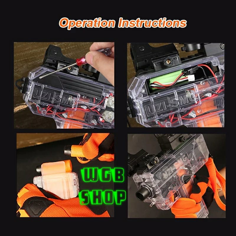 UZI NERF DART BLASTER TOYS MACHINE GUN BATTERY RECHARGERABLE SISTEM OTOMATIS