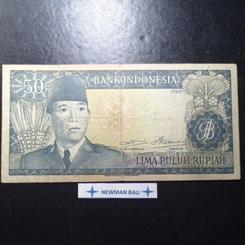 Uang Kertas Kuno Indonesia 50 Rupiah Seri Presiden Soekarno th 1960