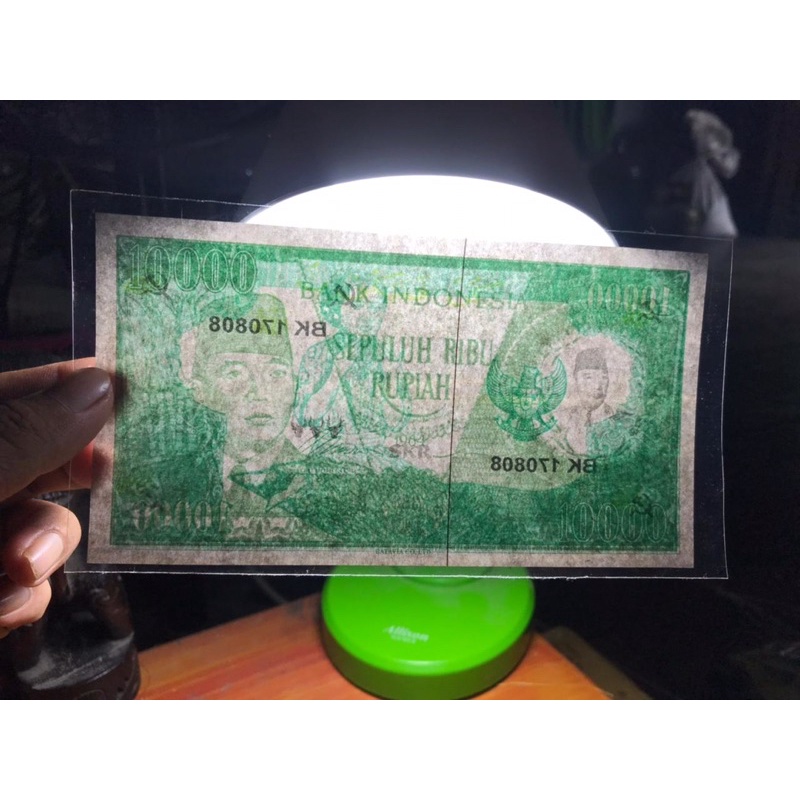 Uang Kuno Soekarno 10000 Rupiah Tahun 1964 Hijau Gambar Belakang Berdoa