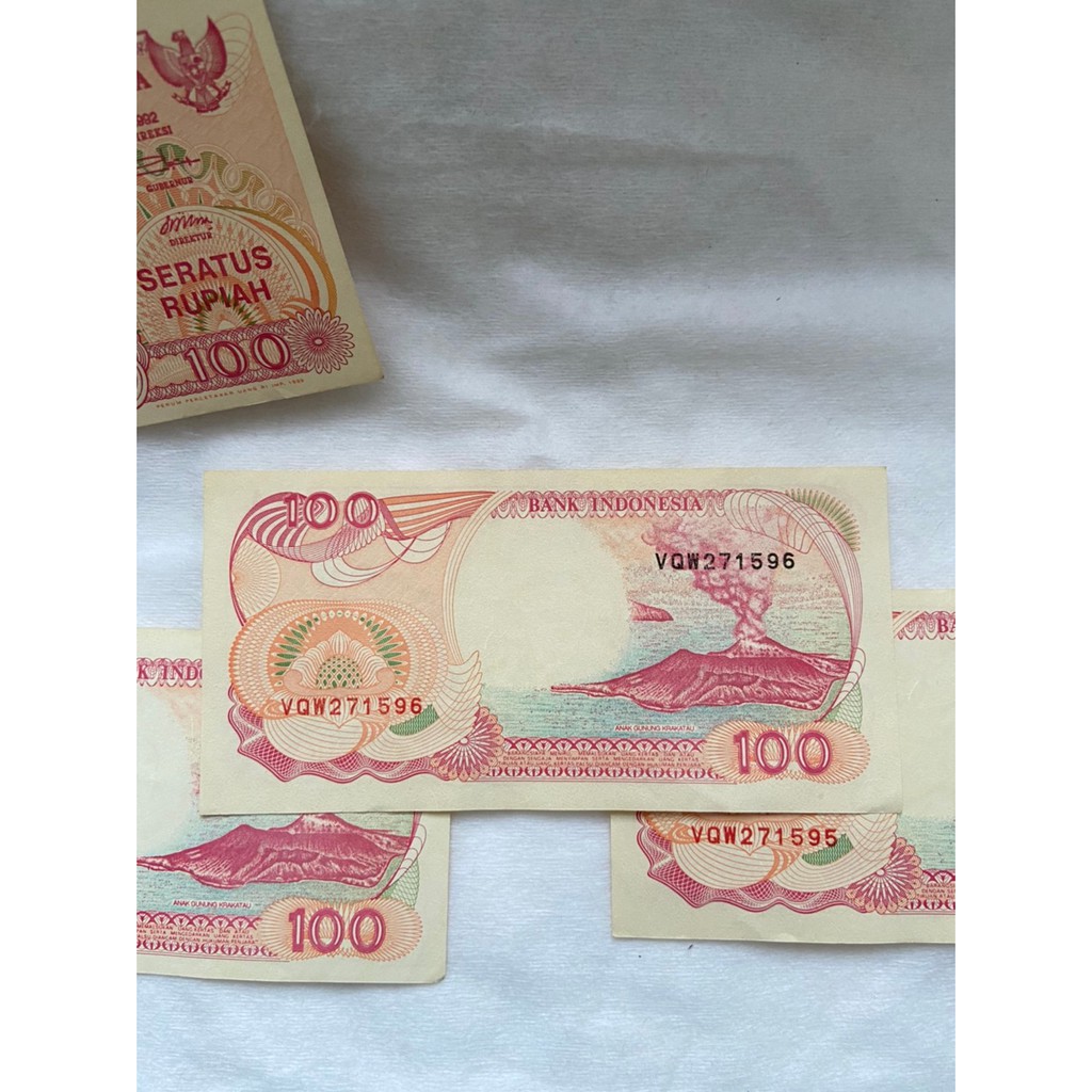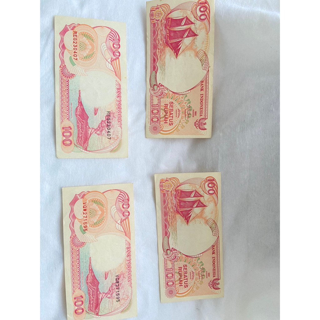 Uang kertas pecahan 100 rupiah tahun 1992 pinisi kondisi bagus