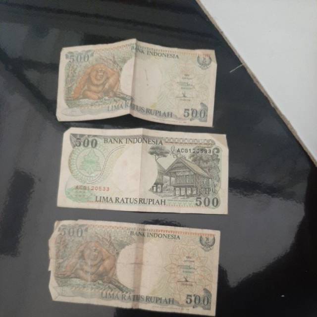 Uang pecahan 500 ribu rupiah gambar monyet thn produksi.1992