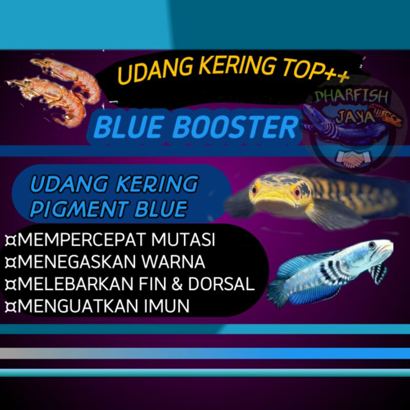 Udang kering blue/udang kering pigment biru/udang kering pakan ikan predator repack 15gr