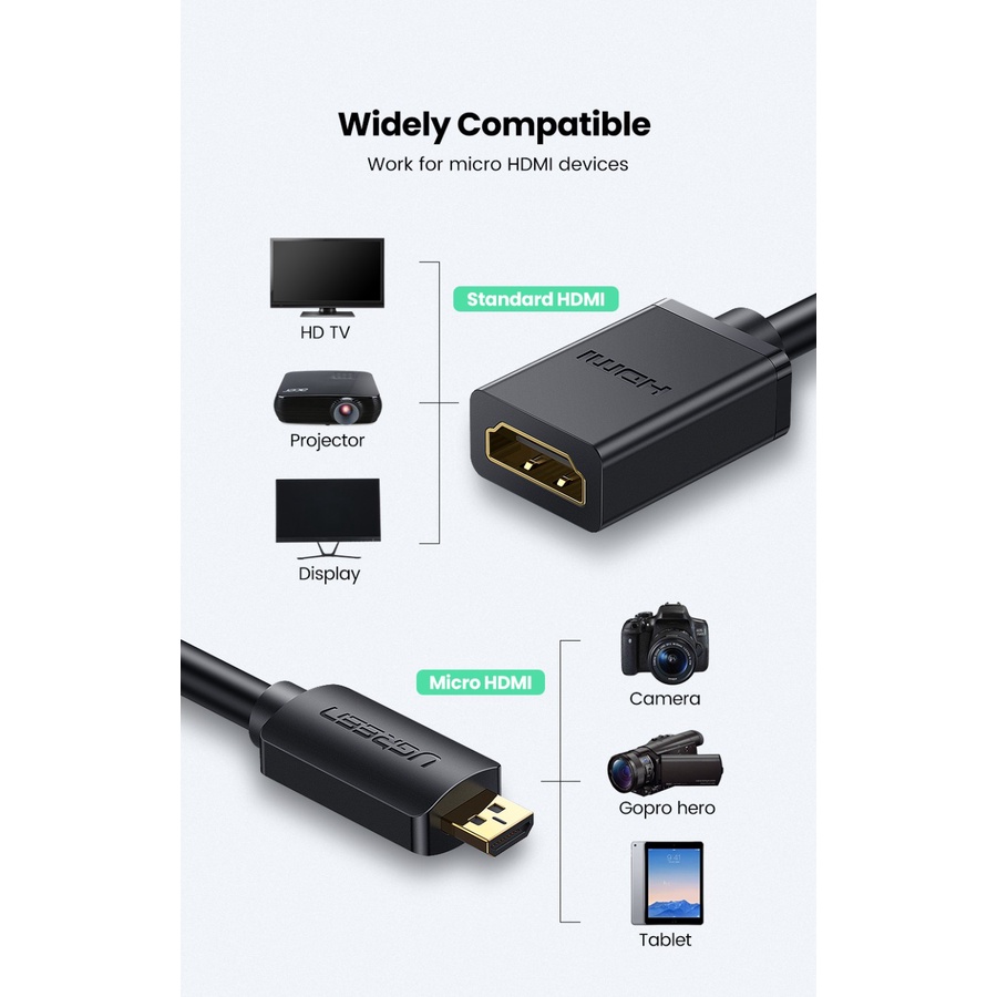 Ugreen 20134 Kabel Micro Hdmi Male / Cable Micro Usb To Hdmi Support Hd 4K Colokan Sambungan Layar Tv Monitor