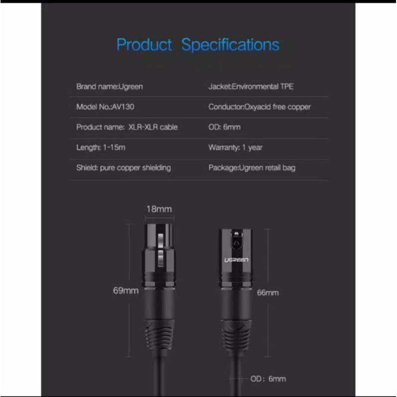 Ugreen 20708 20712 20710 XLR Microphone Karaoke Amplifier - Kabel XLR Ugreen Audio Camera Pc Smartphone
