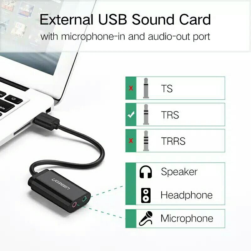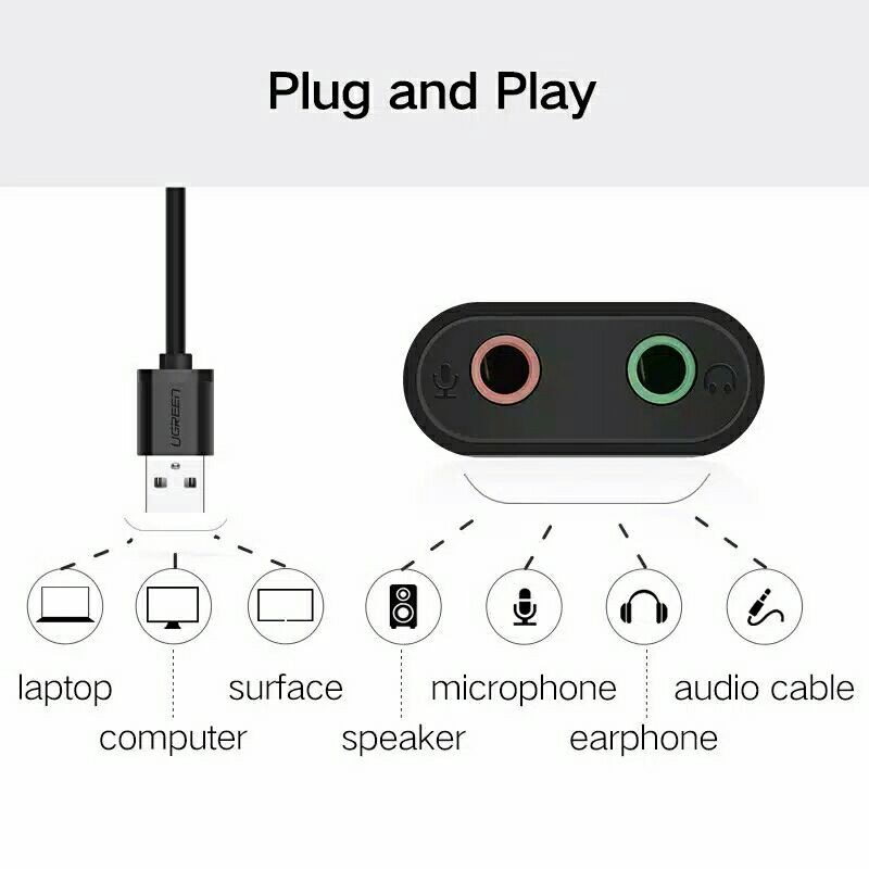 Ugreen Audio Adapter Sound Card USB to Audio Jack 3.5mm