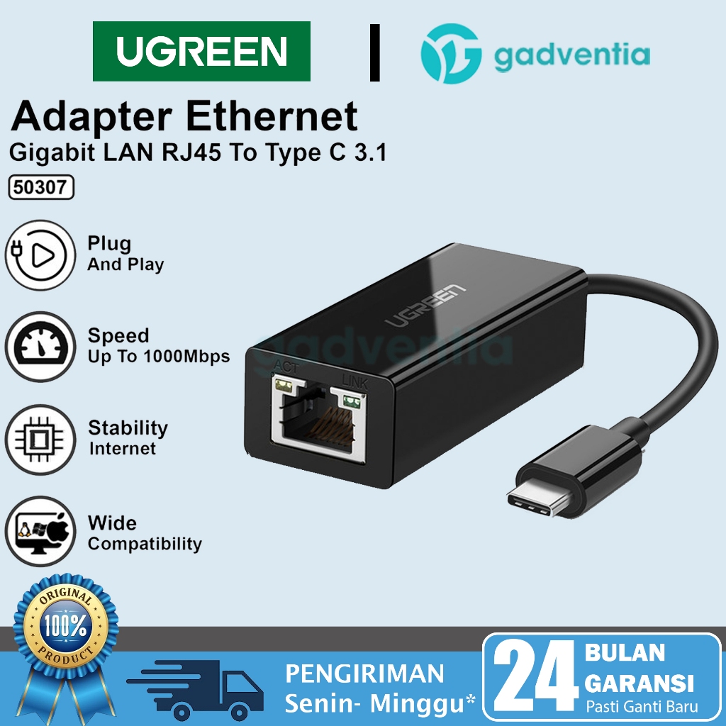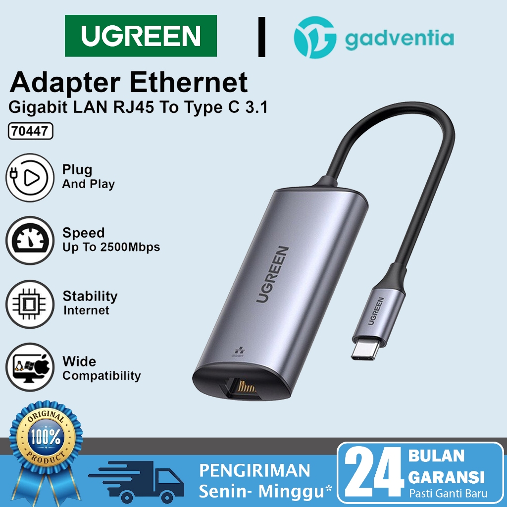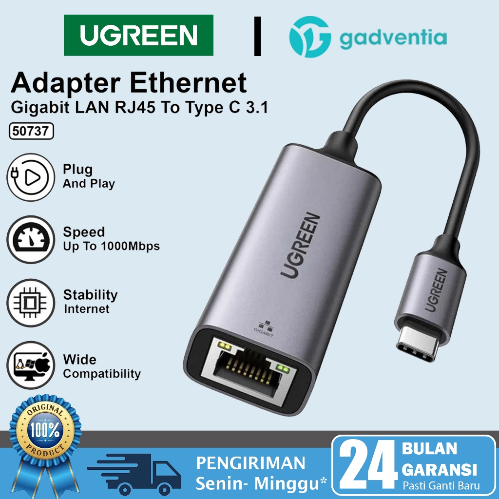 Ugreen Kabel Adapter Usb Type C Ethernet Gigabit To RJ45 Lan 1000mbps Komputer Laptop 50737