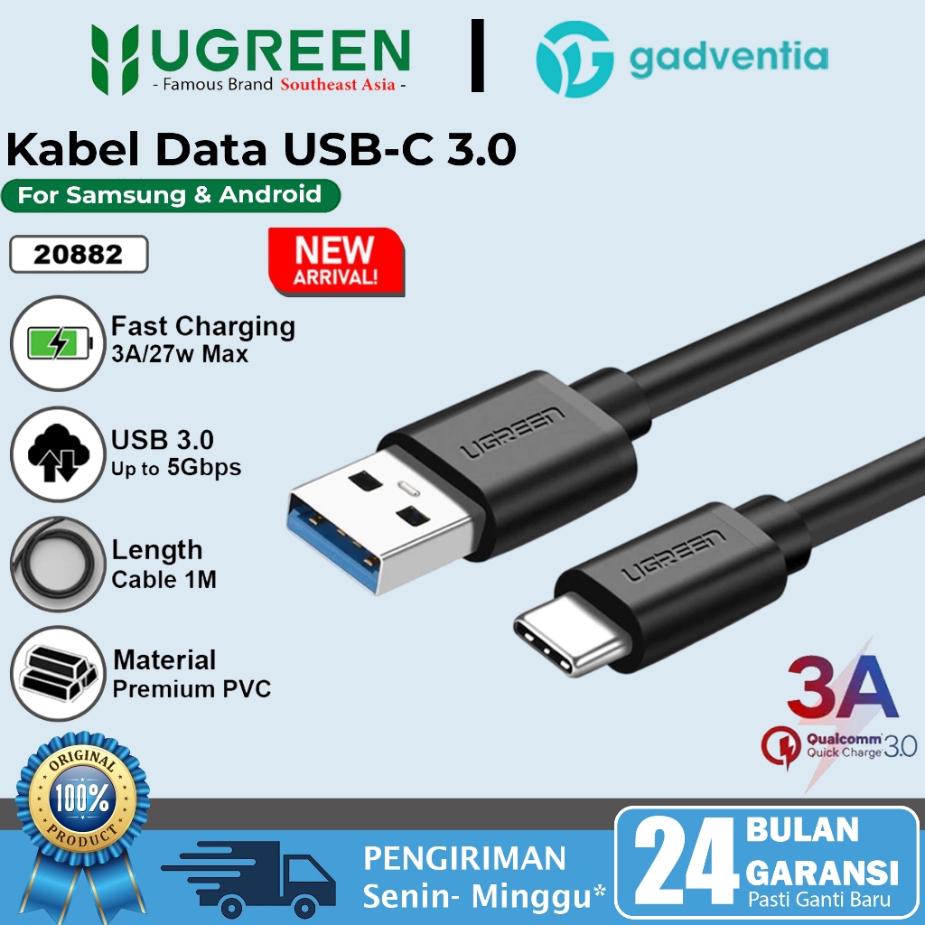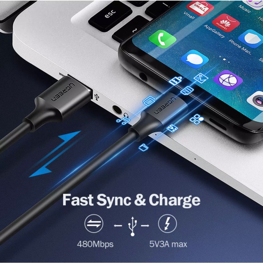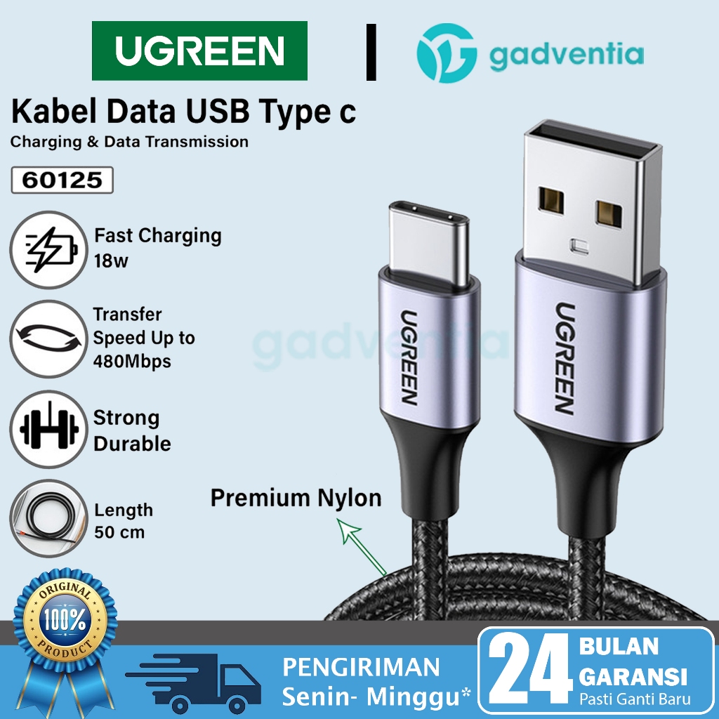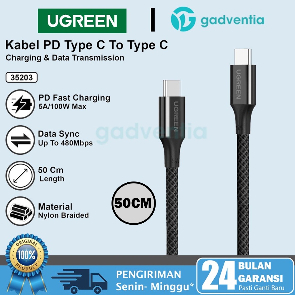 Ugreen Kabel Pendek Charger USB Type C / Usb C to C 50cm 60w Cable for Power Bankl Cas Powerbank Fast Charging 3A 25cm 60114