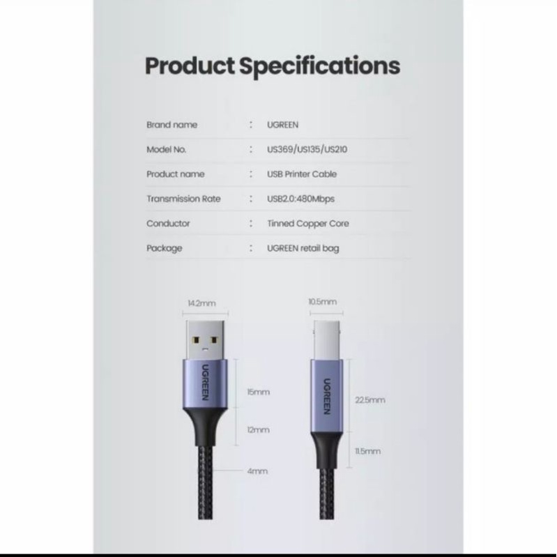 Ugreen Kabel Printer Scanner Usb 2.0 Male to Usb Type B Male - Kabel Printer Ugreen 10351 Kabel Scanner Usb 2.0