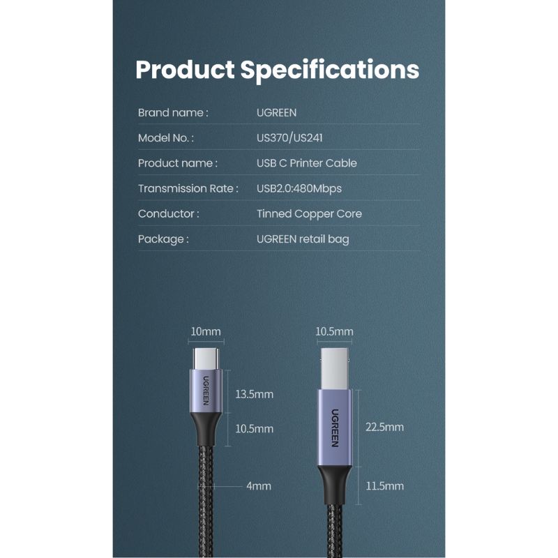 Ugreen Type-C Male to USB Type B 2.0 Printer Cable kabel Printer